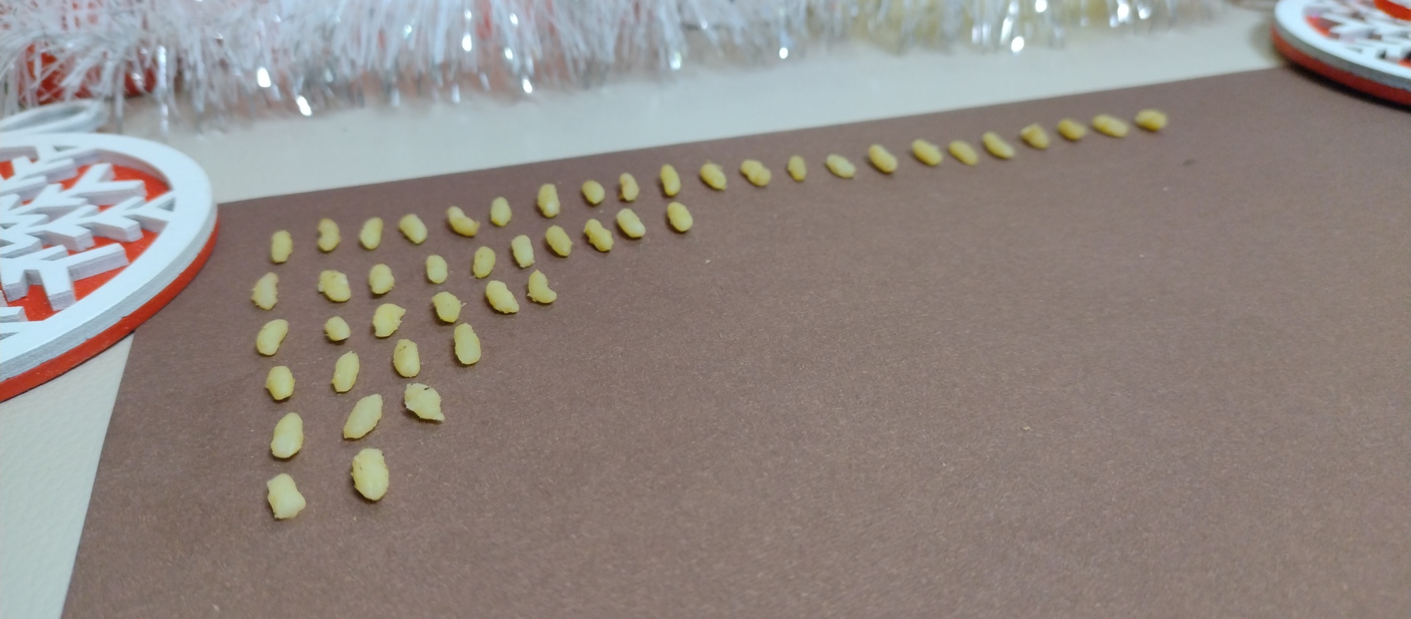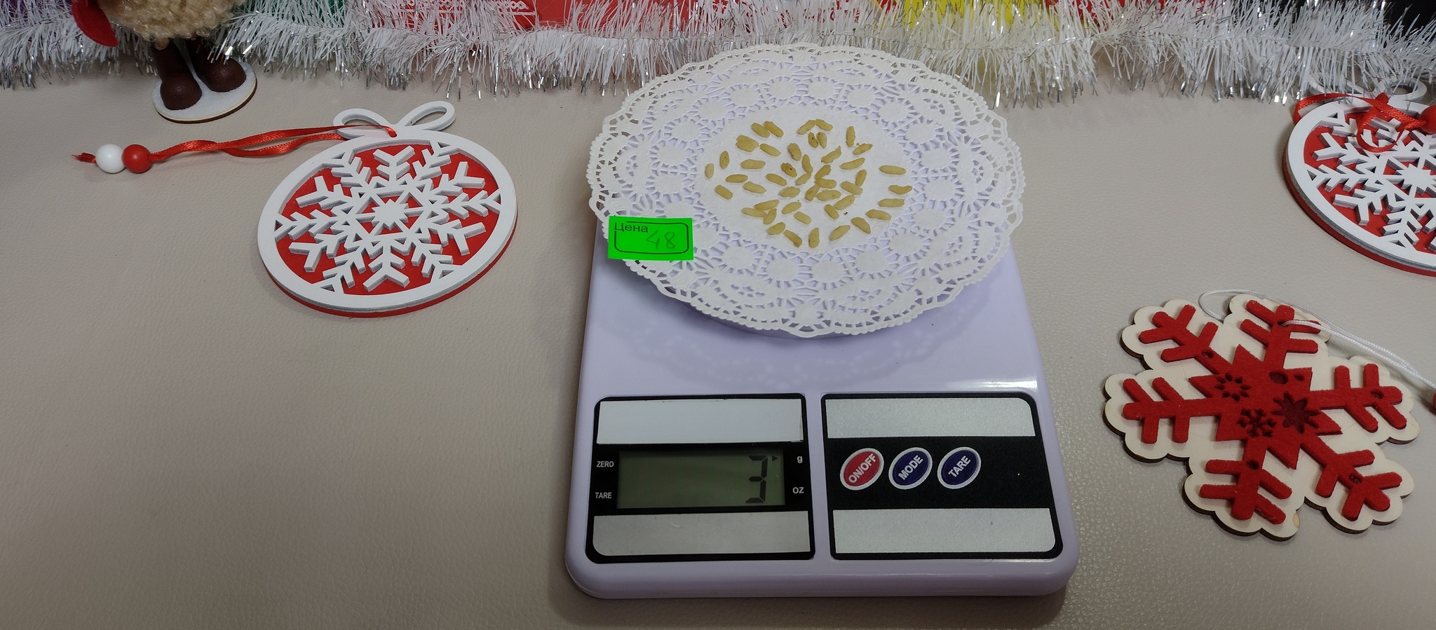 теперь считаем отдельные рисинки,чтобы их можно было взвесить на весах получилось 48 штук и вес 3 грамма