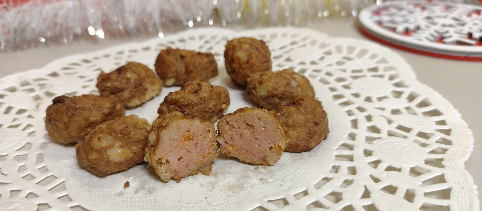 всего у нас 9 круглых маленьких котлеток попробуем их разрезать и посмотреть как они выглядят внутри ,на ощупь достаточно упругие но ножом режутся легко