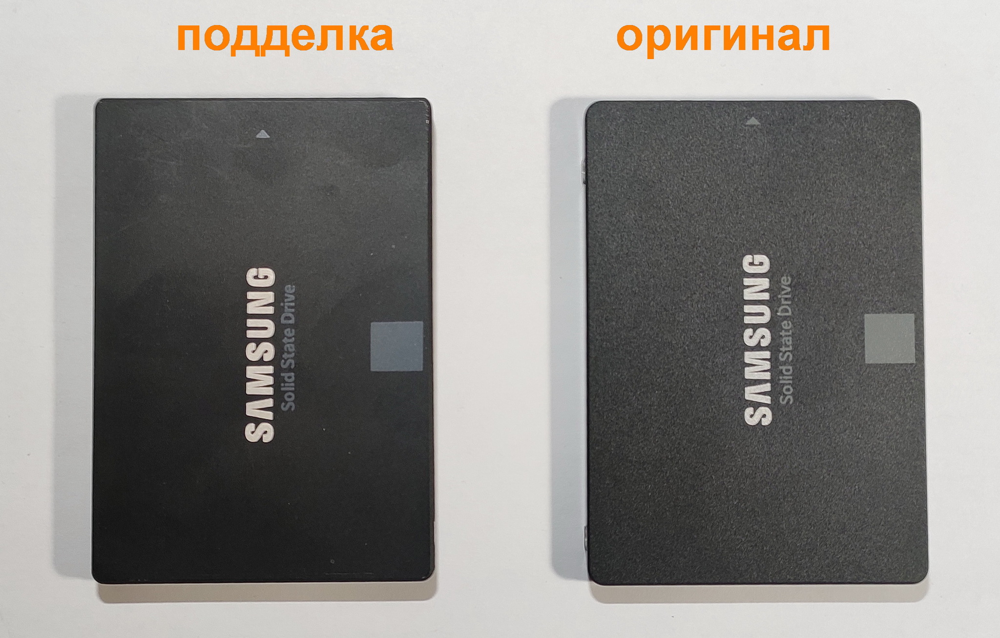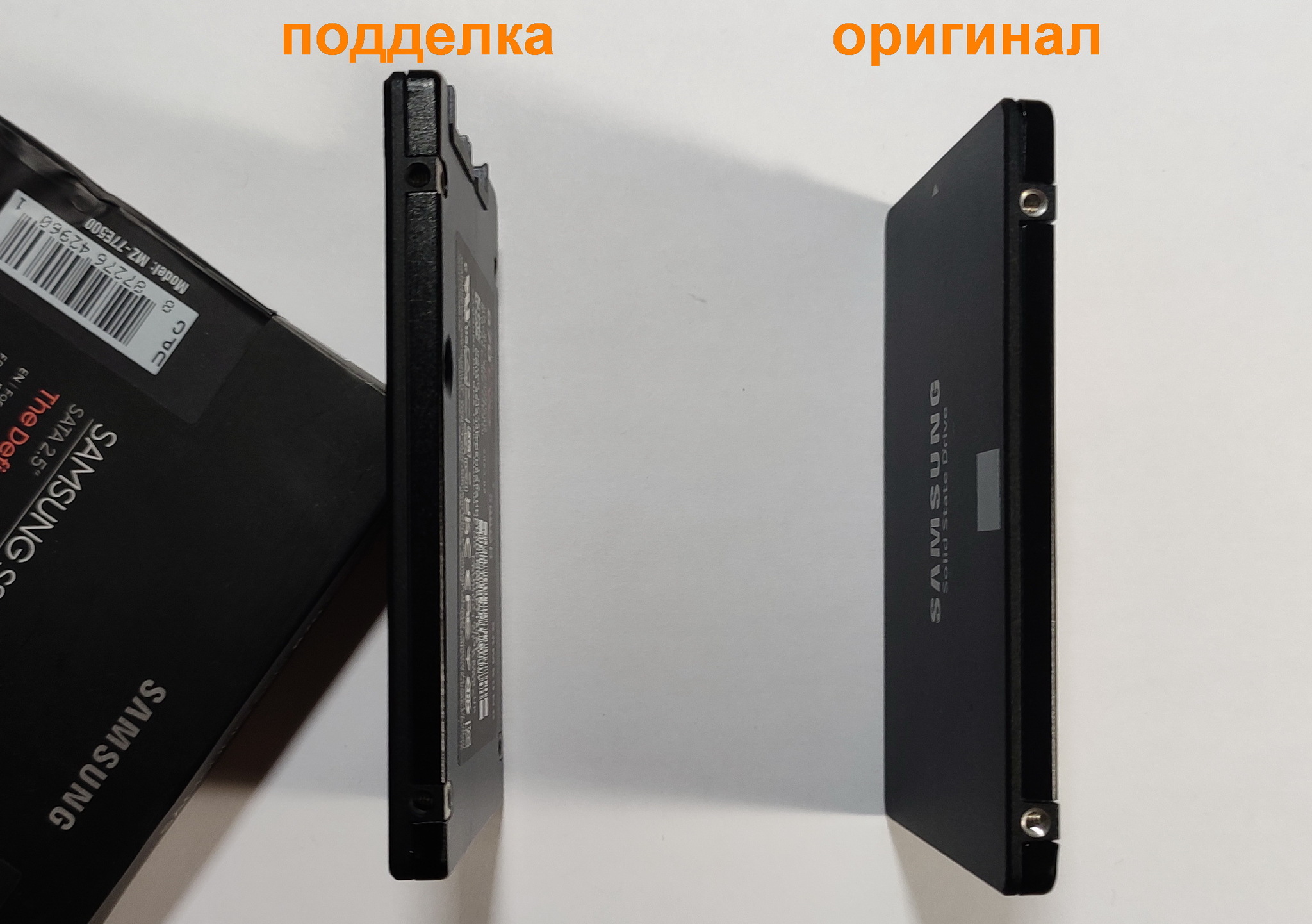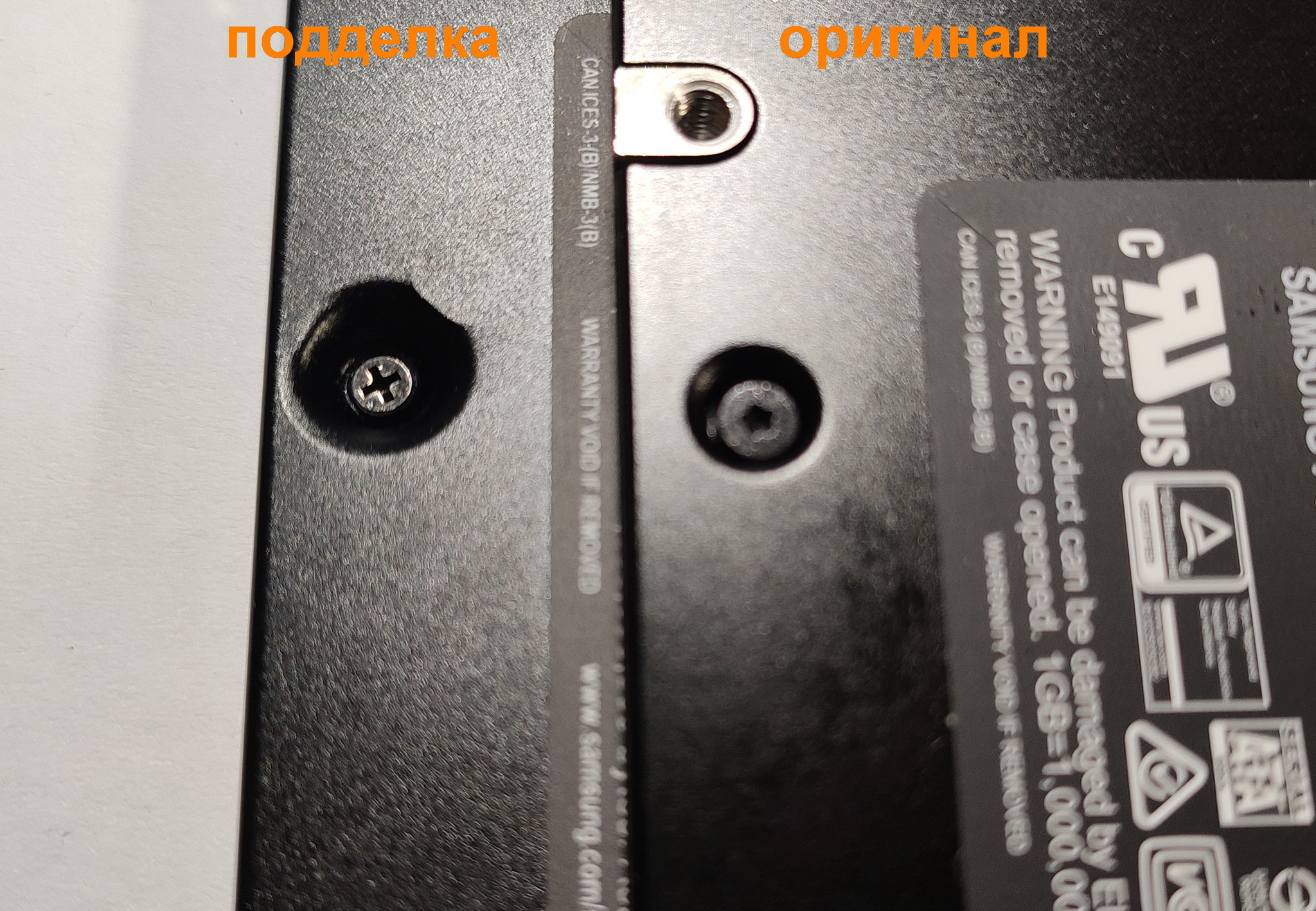 2) На самом ssd диске на корпусе у подделки винт под «крестовую отвёртку», а у оригинального диска «звёздочка» (torx)