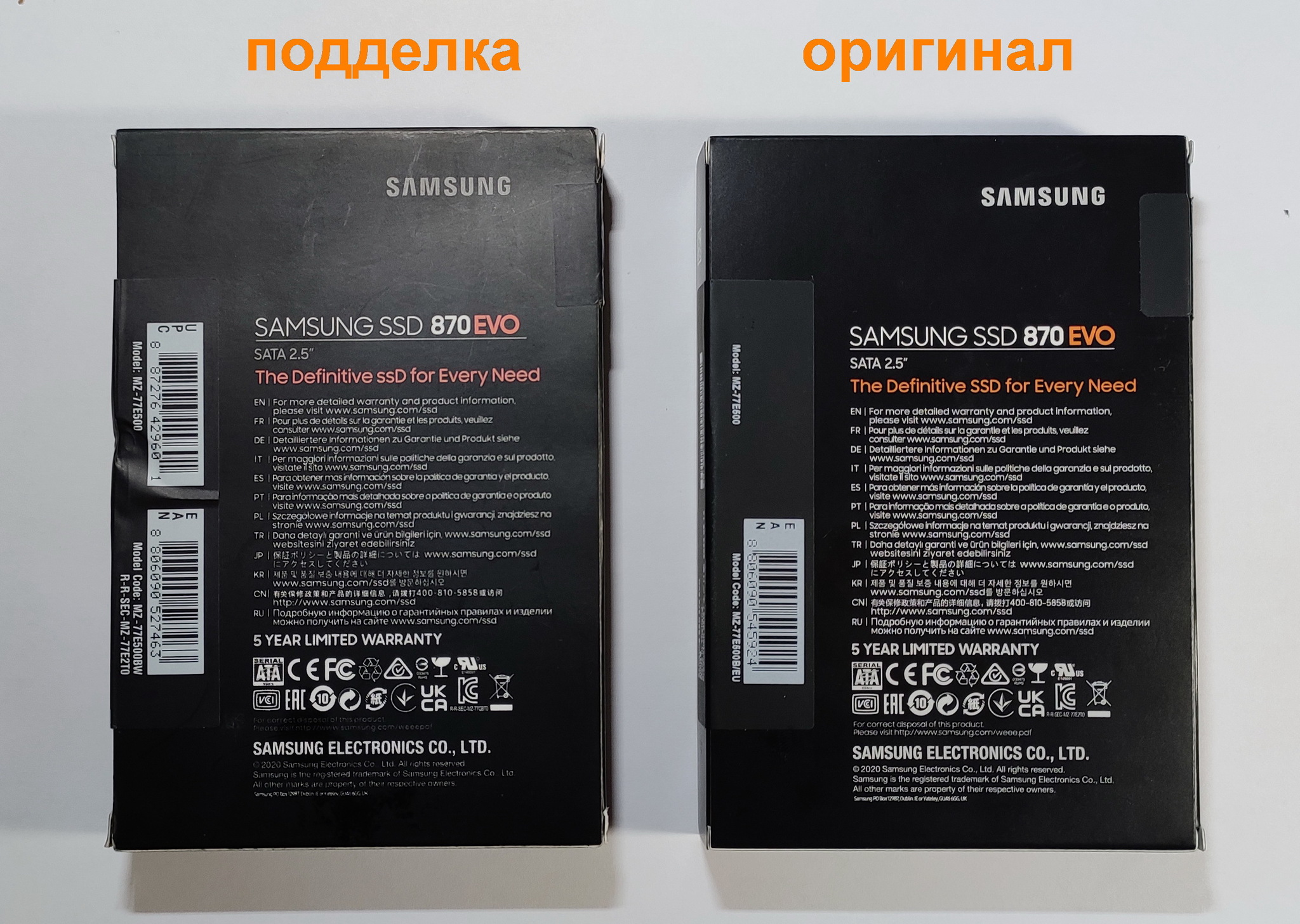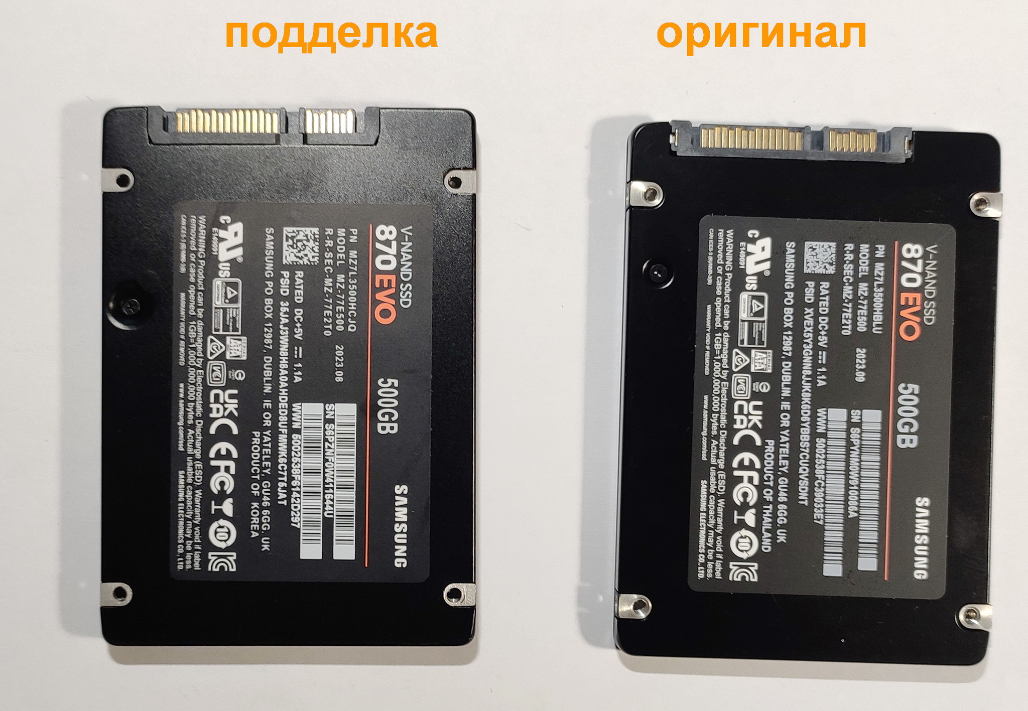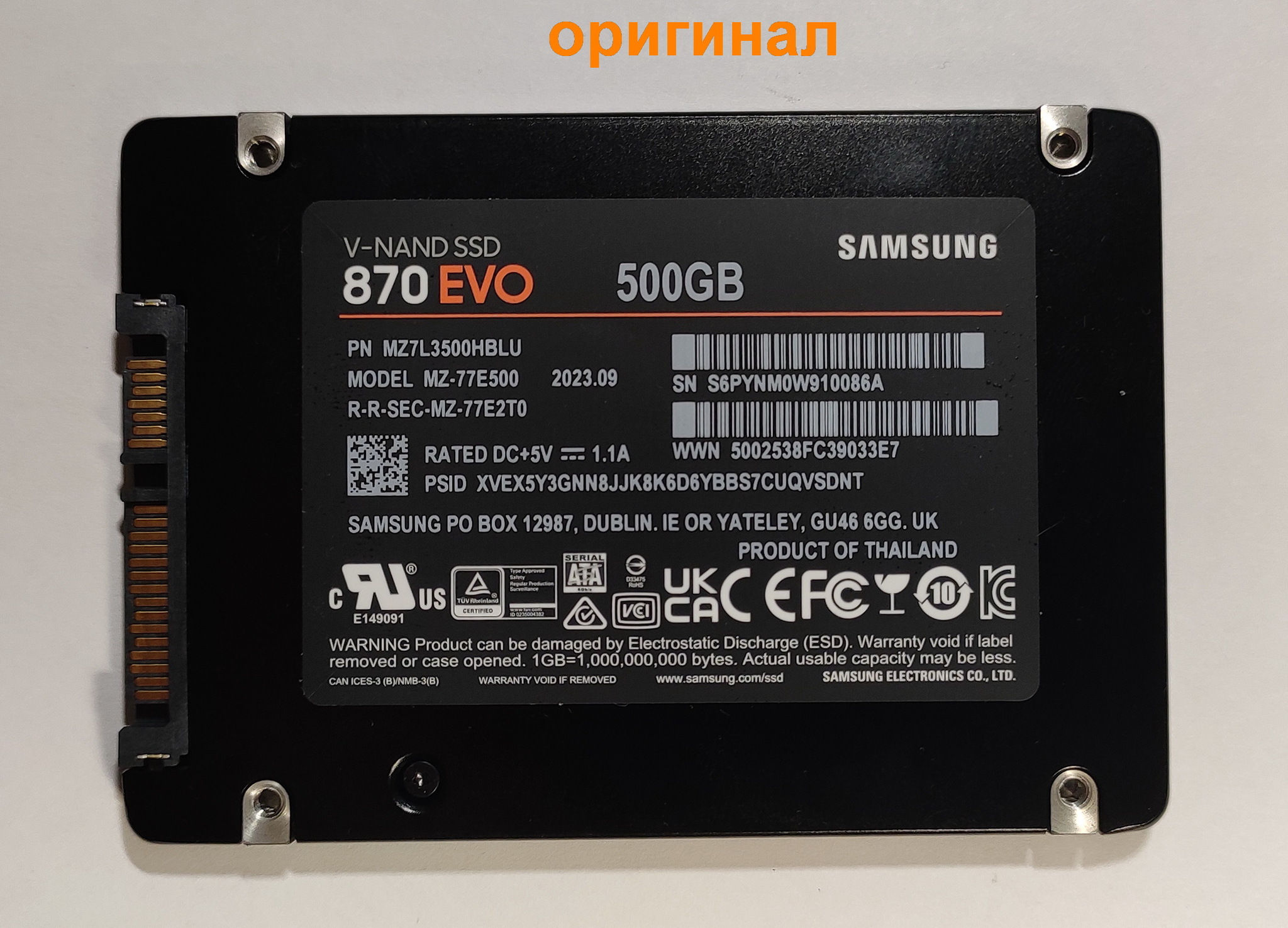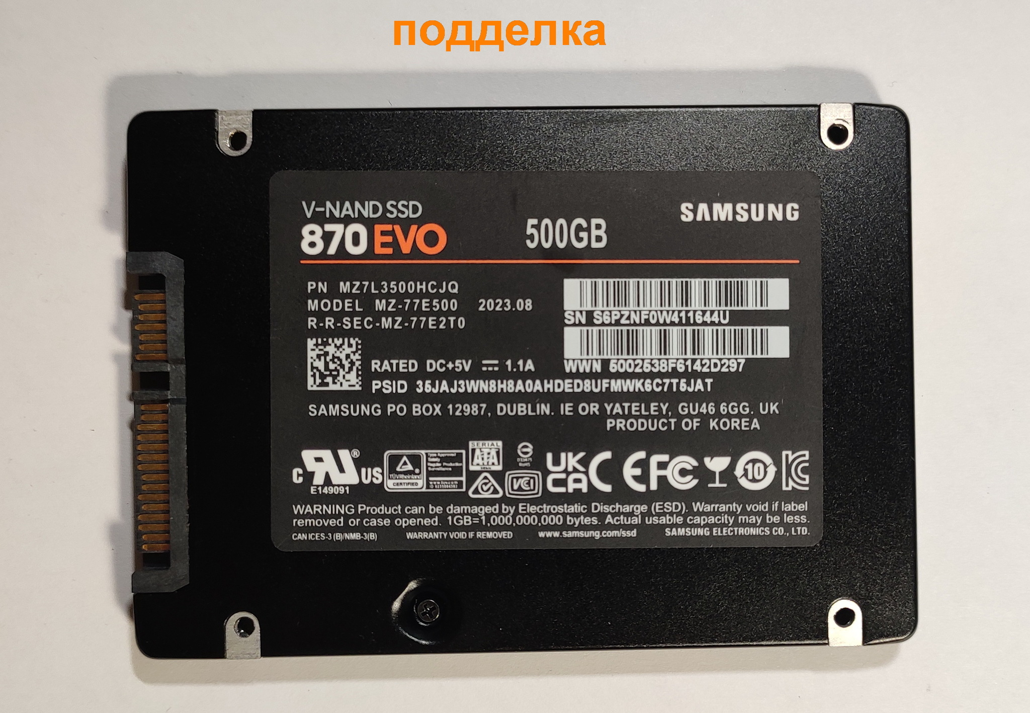 серийный номер подделки = Samsung SSD 870 EVO 500GB (S6PZN M0W41 1644) (14 символов)