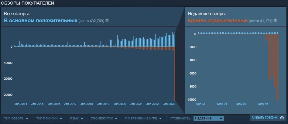После первых падений рейтига экономические изменения спешно откатили, а креативный директор написал целое слезливое письмо, где среди прочего пригрозил тем, что "ревью-бомбинг отпугивает новых игроков и если игра закроется, то хуже будет всем" и заметил, что "есть менее деструктивные способы донести что-то до нас, например, официальный форум".