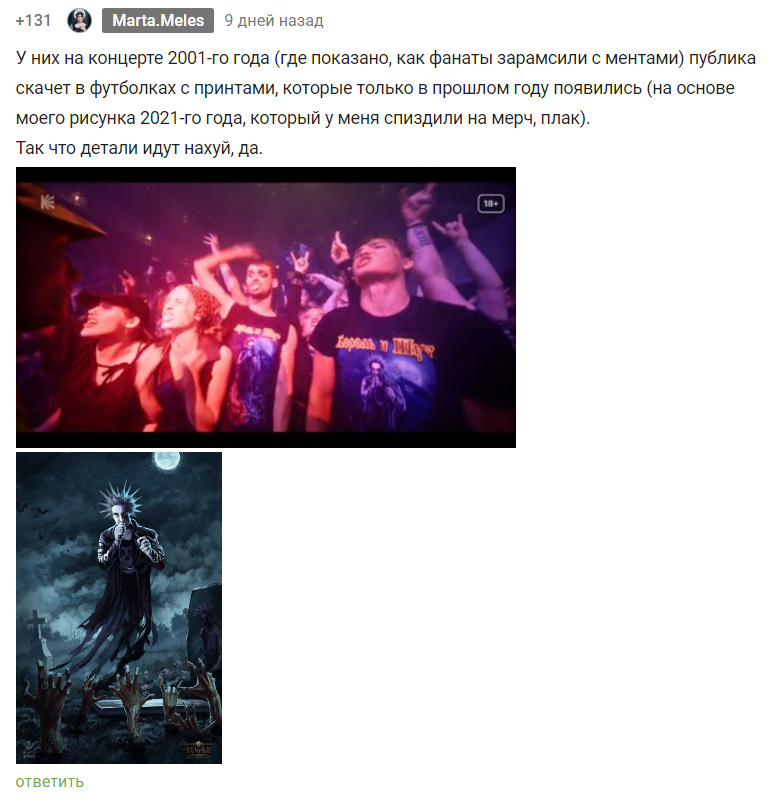 Не знаю, актёры массовки сами их купили или это был реквизит, закупленный съёмочной группой. Но факт налицо — украденное изображение с маркетплейсов перекочевало на экраны и оттуда напоминает мне о нарушении авторского права.
