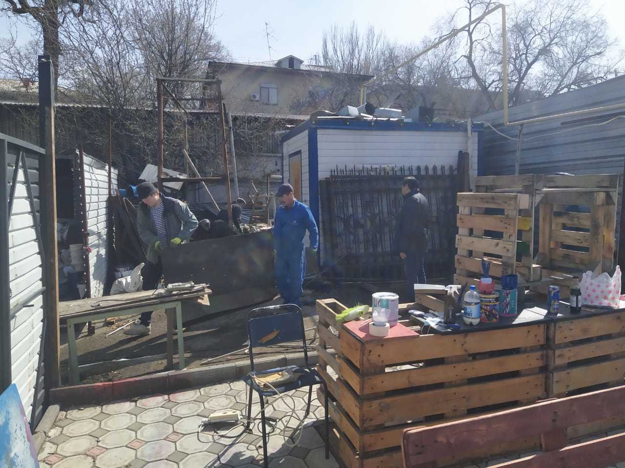 Перенесли задний забор из профлиста на 2,5 метра дальше, расширив тем самым площадку, и освободив место для будущего фудтрака. В этом помог владелец площадки, спасибо ему большое, пригнал своих роботяг и сварщика, освободили весь мусор который был за забором, все убрали и поставили новый чуть дальше.