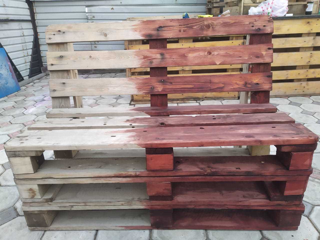После этого беремся за "мебель". Решили максимально сохранить бюджет, поэтому использовали старую что уже была на объекте. Тут все стандартно, шлифовка, морилка, лак.