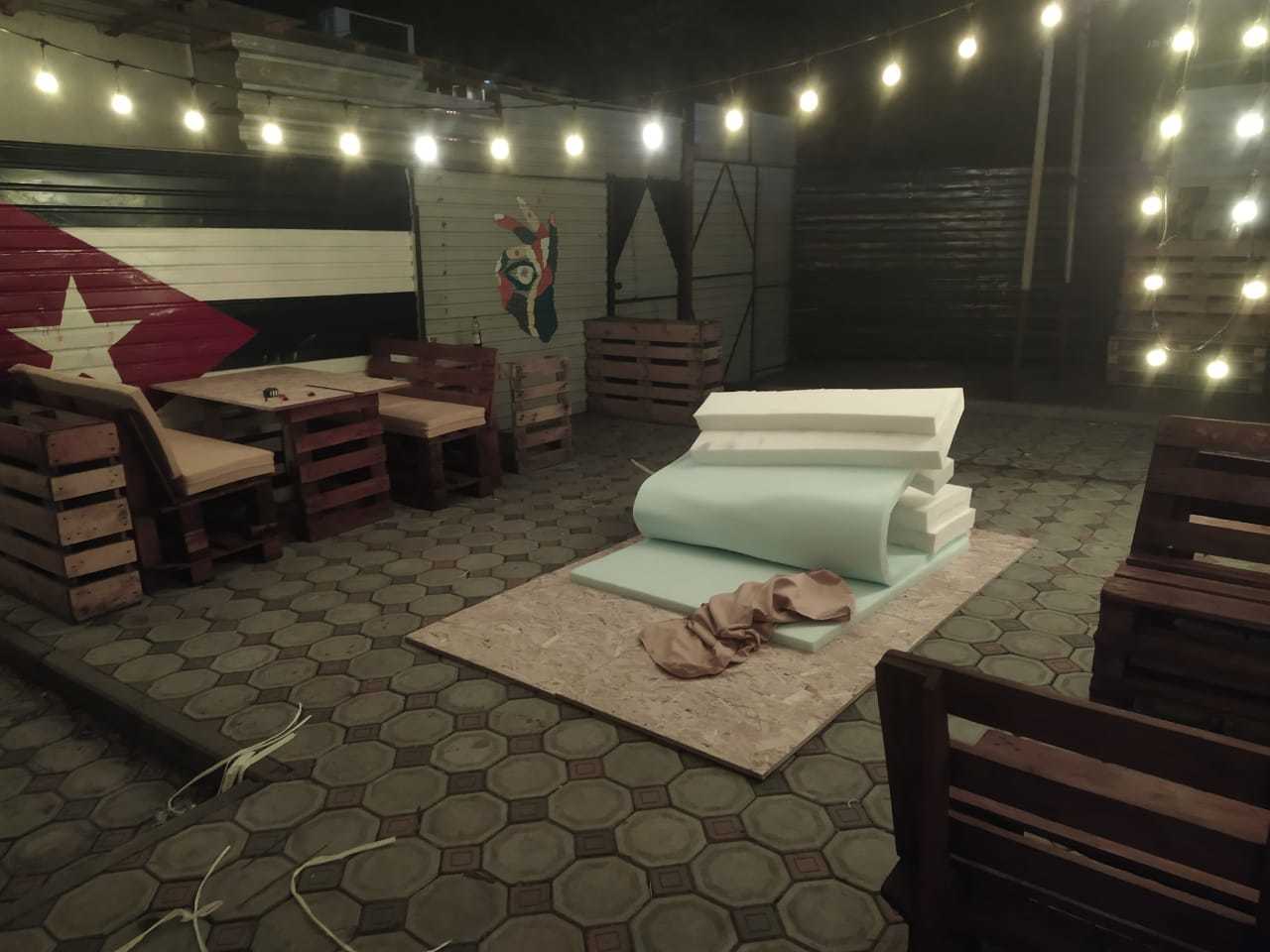То как это выглядело когда мы впервый раз сюда пришли. Мусор, высженная на солнце "мебель" из палет, выцвевшие рисунки, и вот это все.
