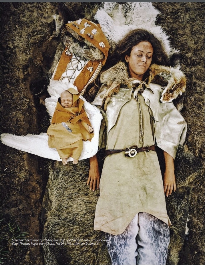 Захоронение юной женщины (на момент смерти ей было всего 18-20 лет) и ее новорожденного ребенка из Ведбека, Дания. Возраст погребения — 7000–6000 лет.