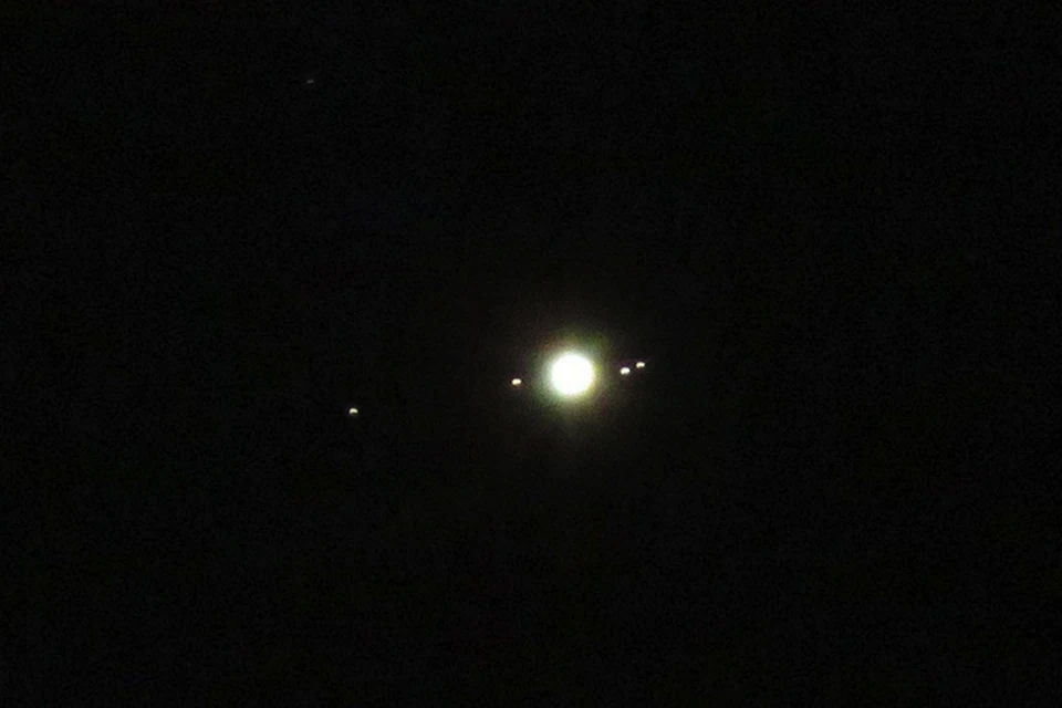 Уже ощутили радость от покупки телескопа? Ладно, понятное дело, что наблюдать из окна квартиры в городе - это такое себе занятие. Давайте выберемся куда-нибудь за город, с телескопом. Дождемся выходных, хорошей погоды, ну и для компании с собой возьмем кого-нибудь. Когда эти условия сложились (через пару месяцев) - Юпитер в телескоп начинает выглядеть уже лучше. Появляются первые детали и можно увидеть атмосферные полосы.
