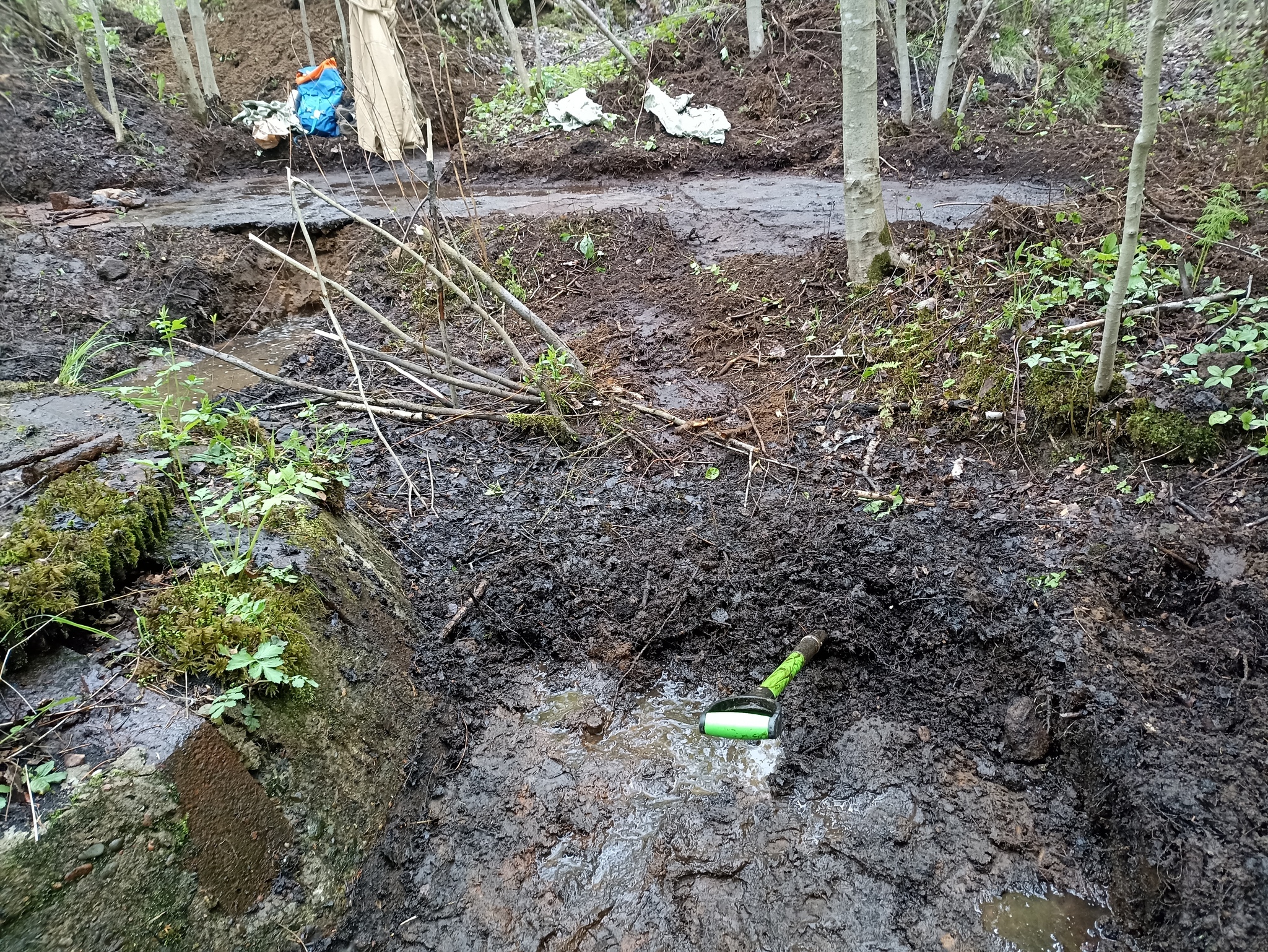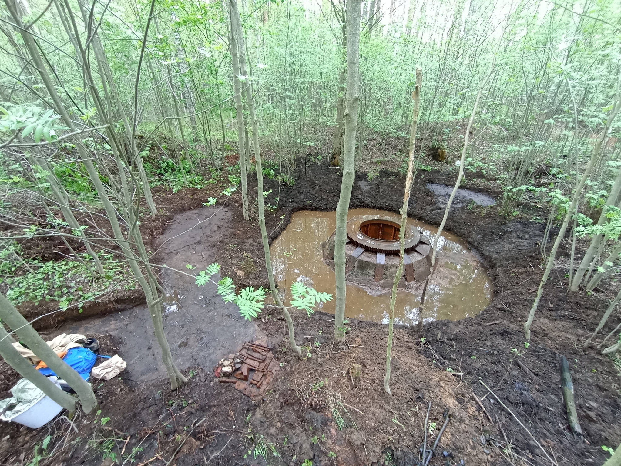 В конечном счёте получилось так, + заказал табличку с кратким описанием объекта. Через какое-то время запись в ВК о начале работ прочитали журналисты, и я ещё с корреспондентом ЛенТВ24 ездил в тот лес, сняв памятный сюжет к 22 июня.. Комары нас тогда прям раздирали на части..