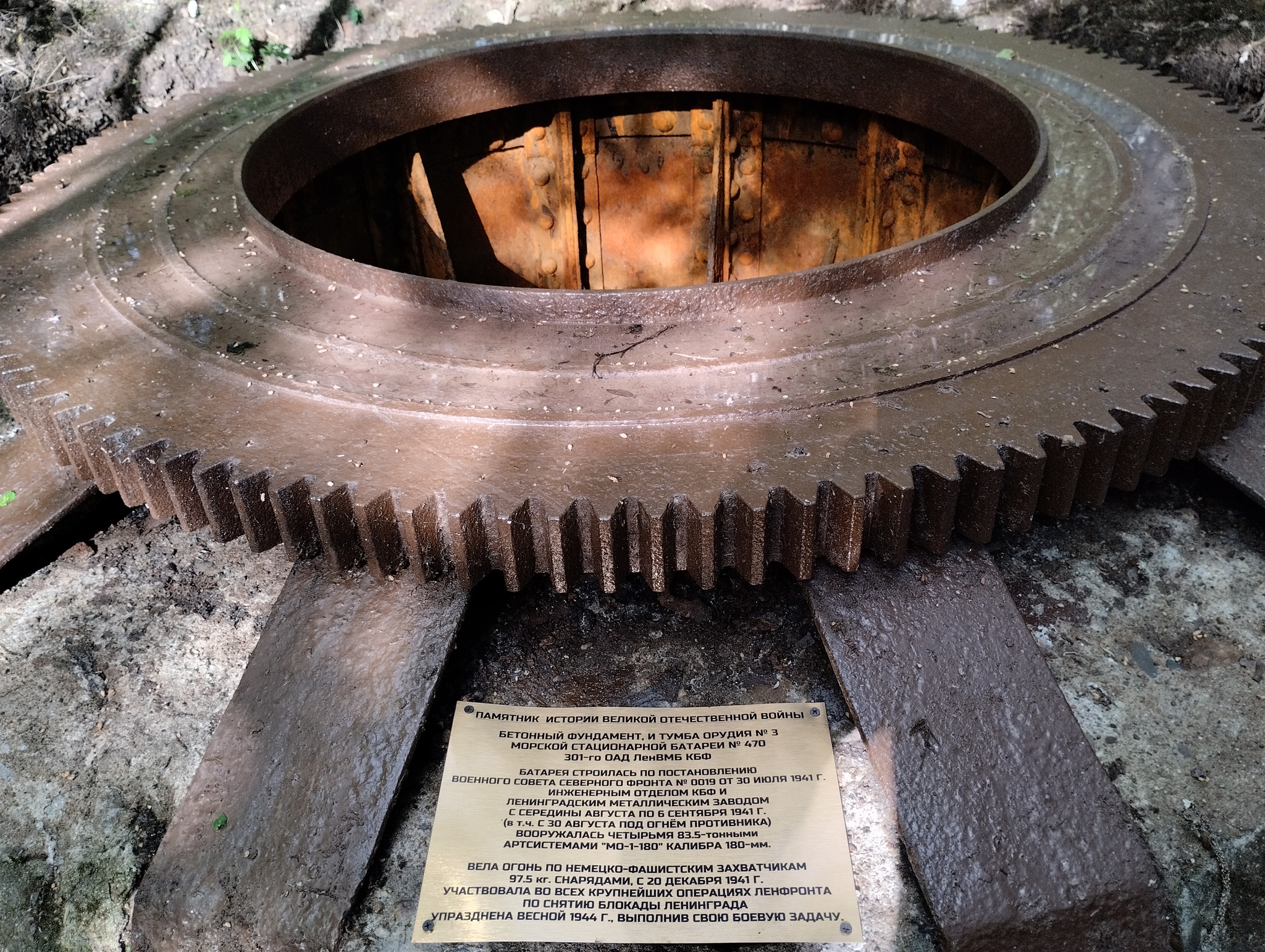 Позиции её, как позднее выяснилось, исследователи фортификации и краеведы посещали ещё лет 15 назад, но до уборки дело у них не доходило.. А орудийные тумбы тем временем давно заплыли землёй, прелой листвой, и ничто не указывало на то, что это памятник военной истории, и для Ленобласти весьма уникальный (почти все временные морские батареи в ВОВ под Ленинградом ставили на деревянные фундаменты, которые после ВОВ разобрали).