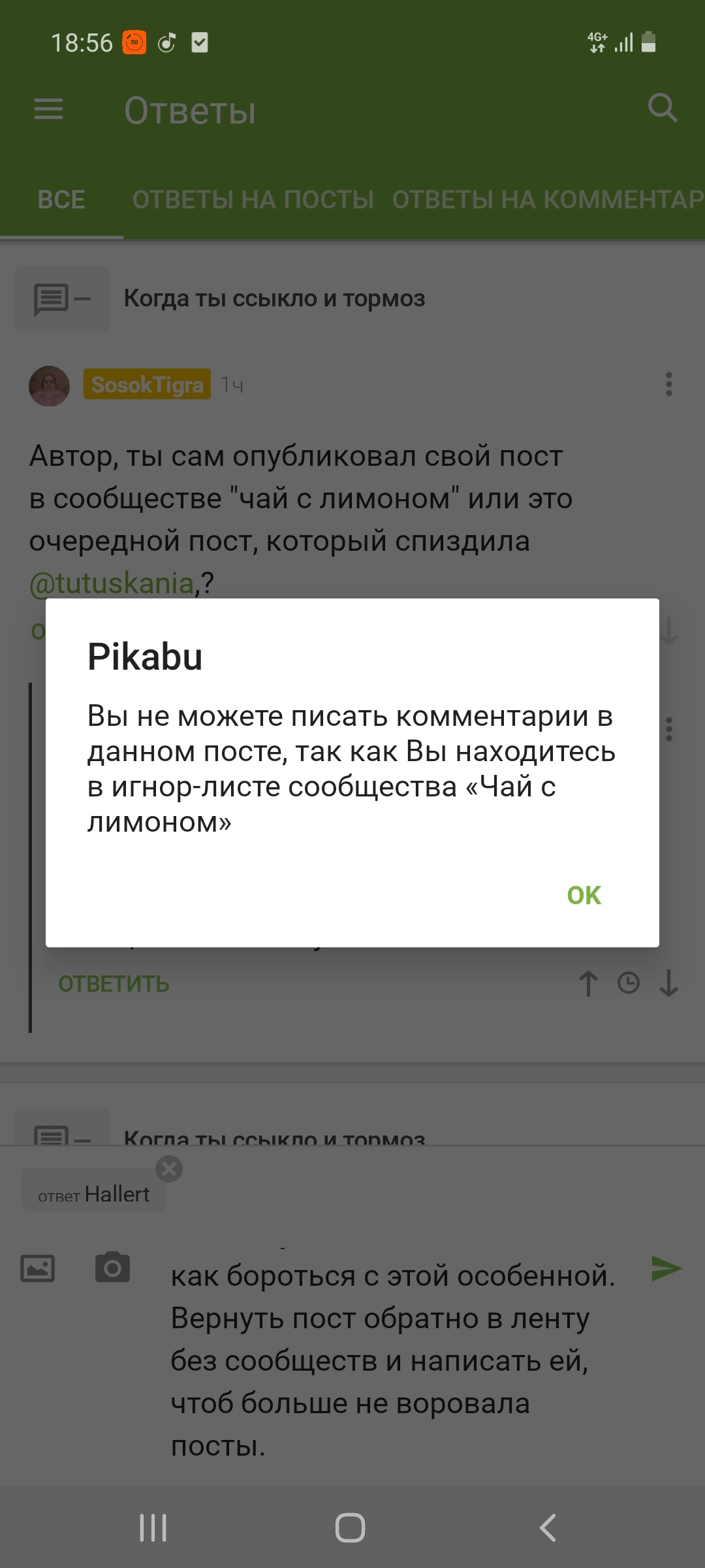 Ответ на пост «Вредоносные действия сообщества "Чай с лимоном". Без рейтинга»