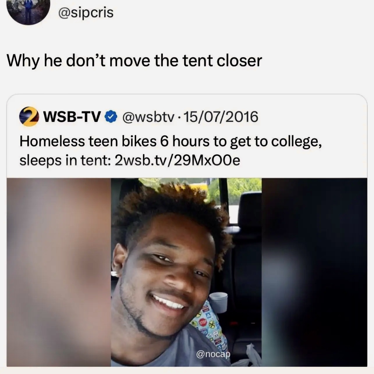 - Бездомный подросток ездит на велосипеде 6 часов, чтобы добраться до колледжа, спит в палатке