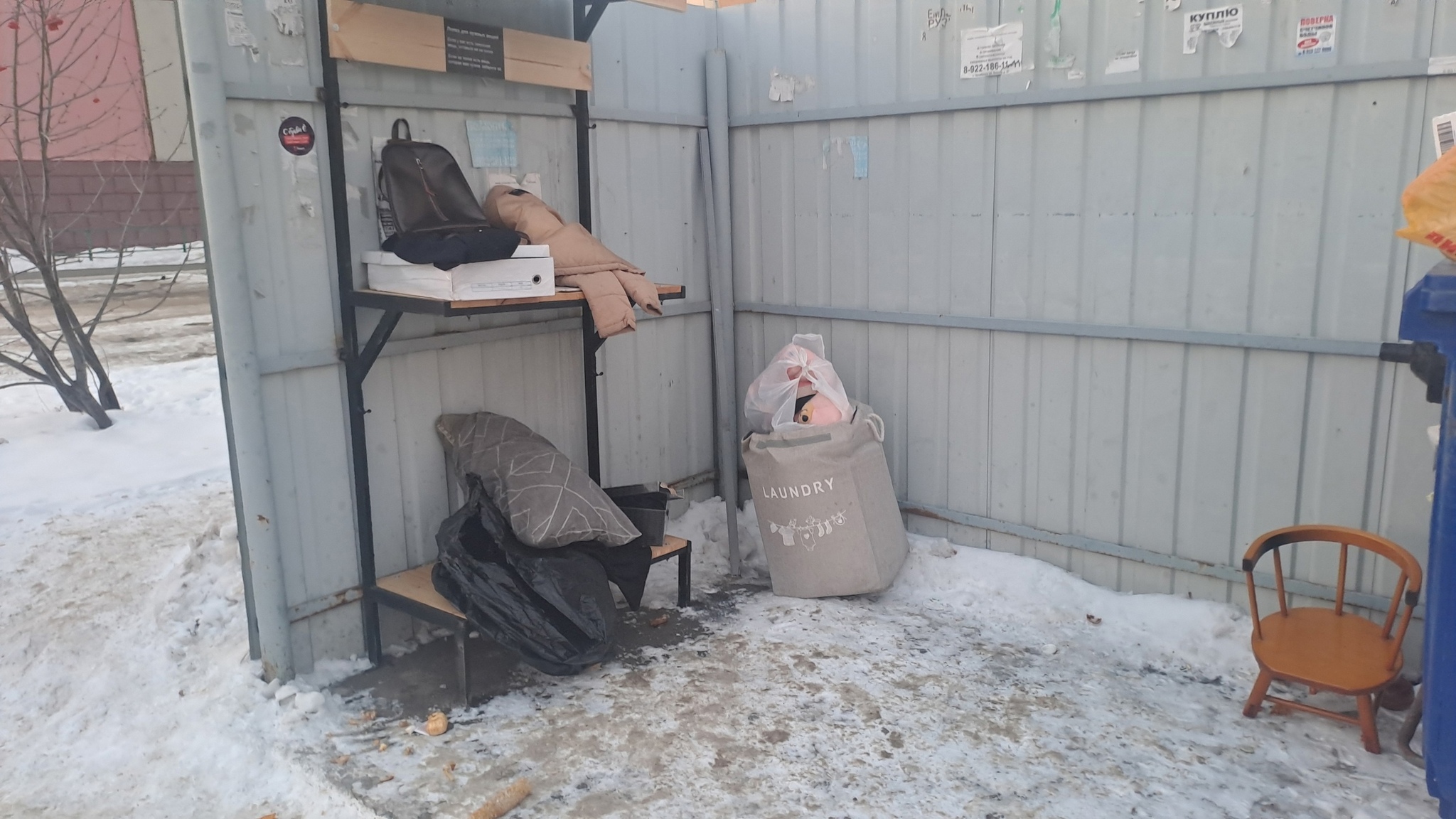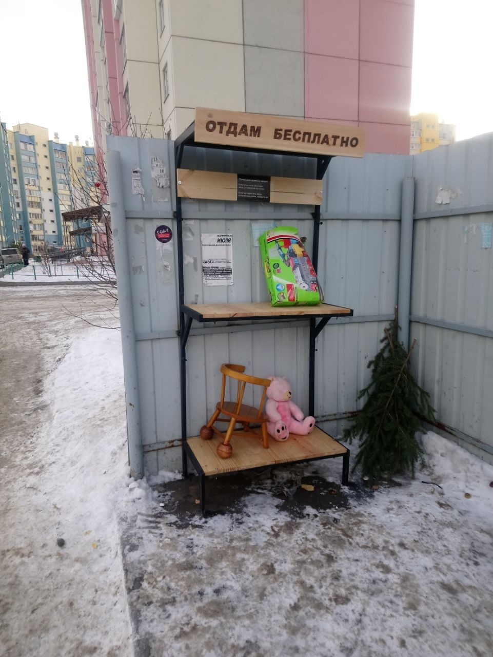 Показываю, что стало со стеллажом для бесплатных вещей спустя неделю.