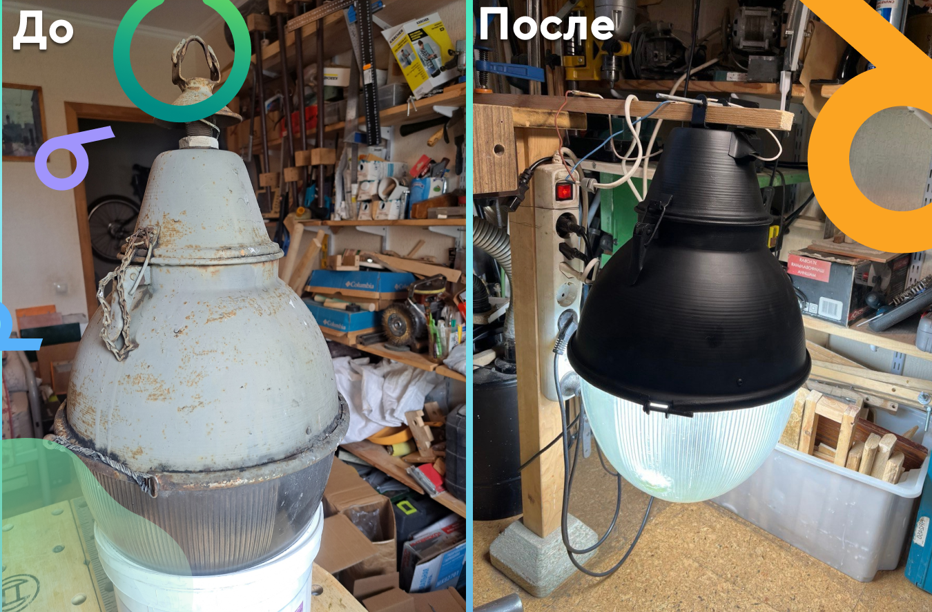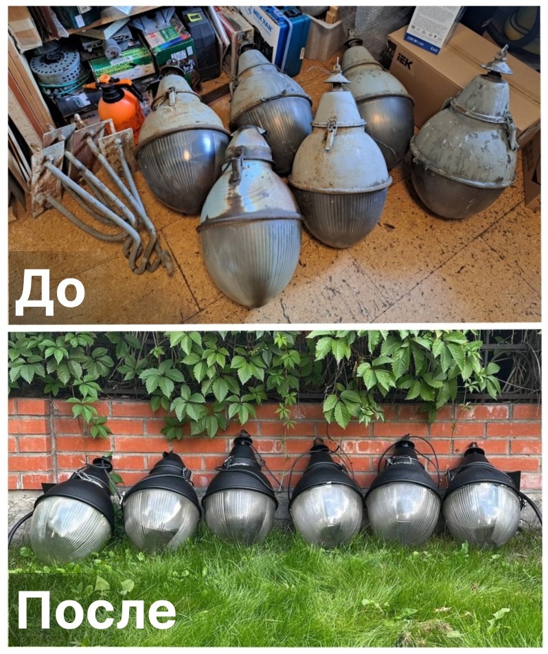 За реставрацию взялся волонтёр Илья Сивков. Он полностью разобрал фонари, снял старую краску, выправил вмятины, загрунтовал и покрасил все элементы, вмонтировал патроны, кабель и лампы, установил новый крепёж.