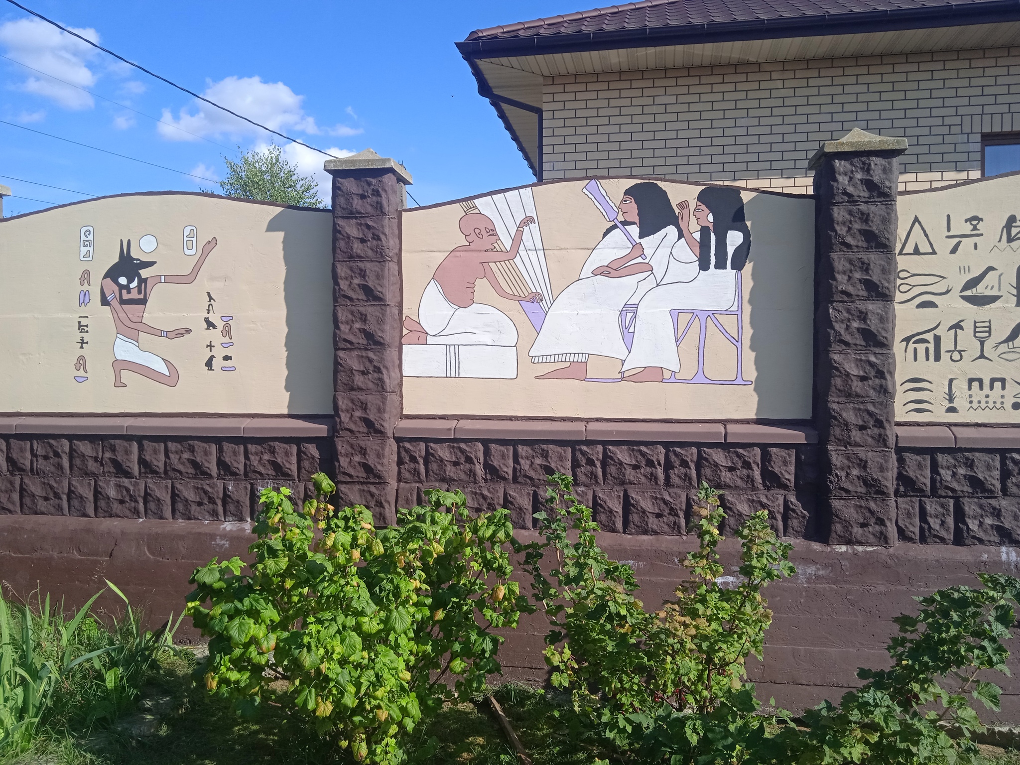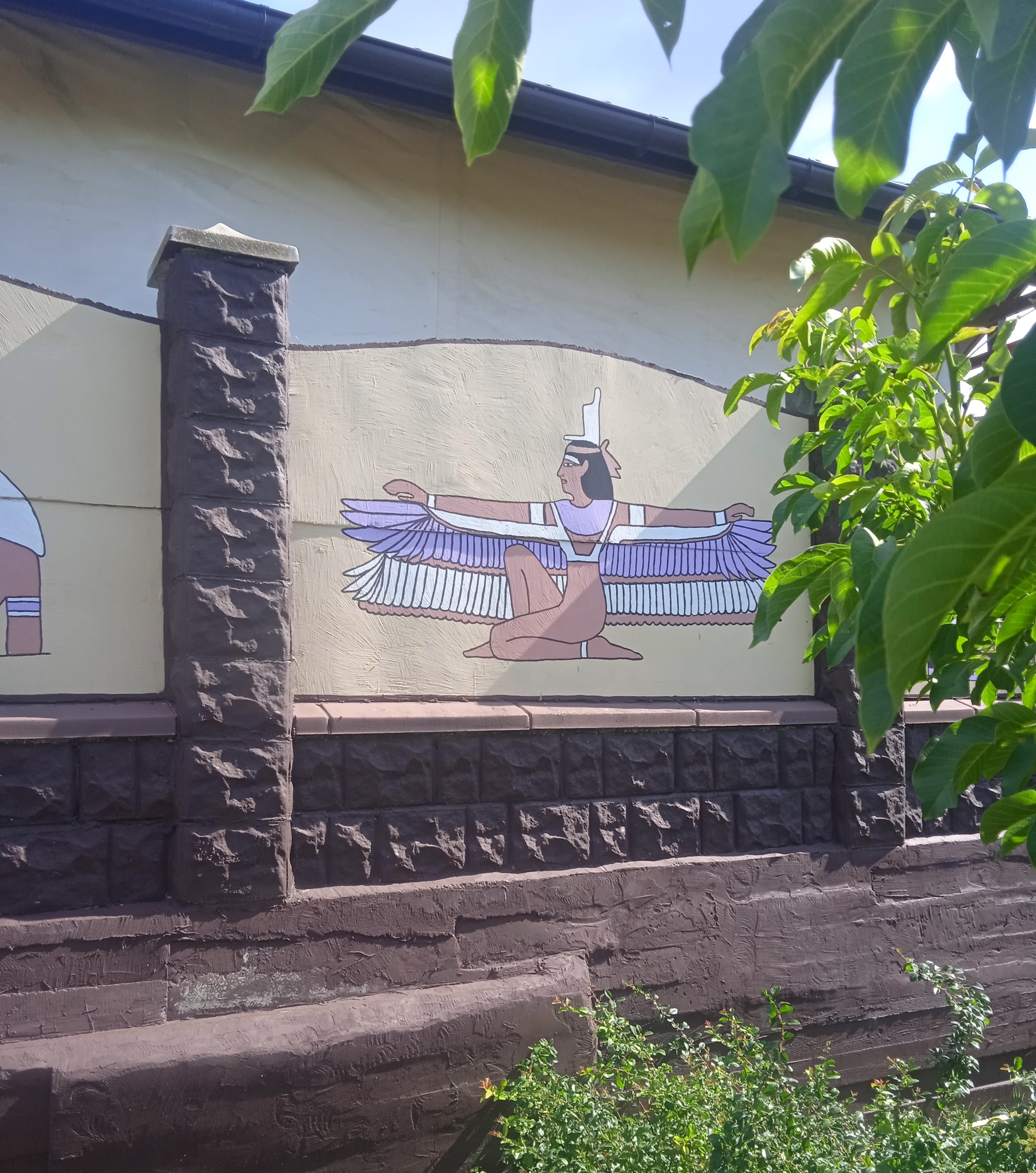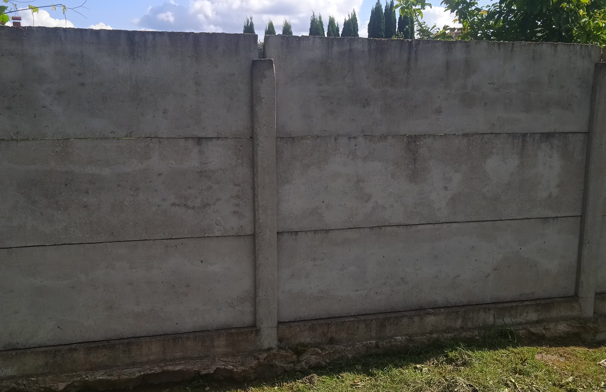Плохо, конечное, что после каждой зимы на опорной стенке появляются высолы т .к. у соседа не сделано водоотведение, его участок выше и вода просачивается через стену. Но эти высолы легко убираются специальной жидкостью, рисунки от них не портятся.