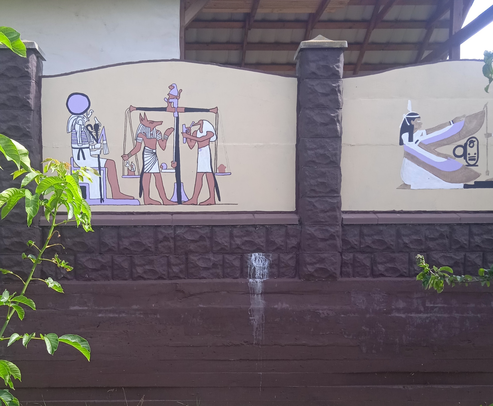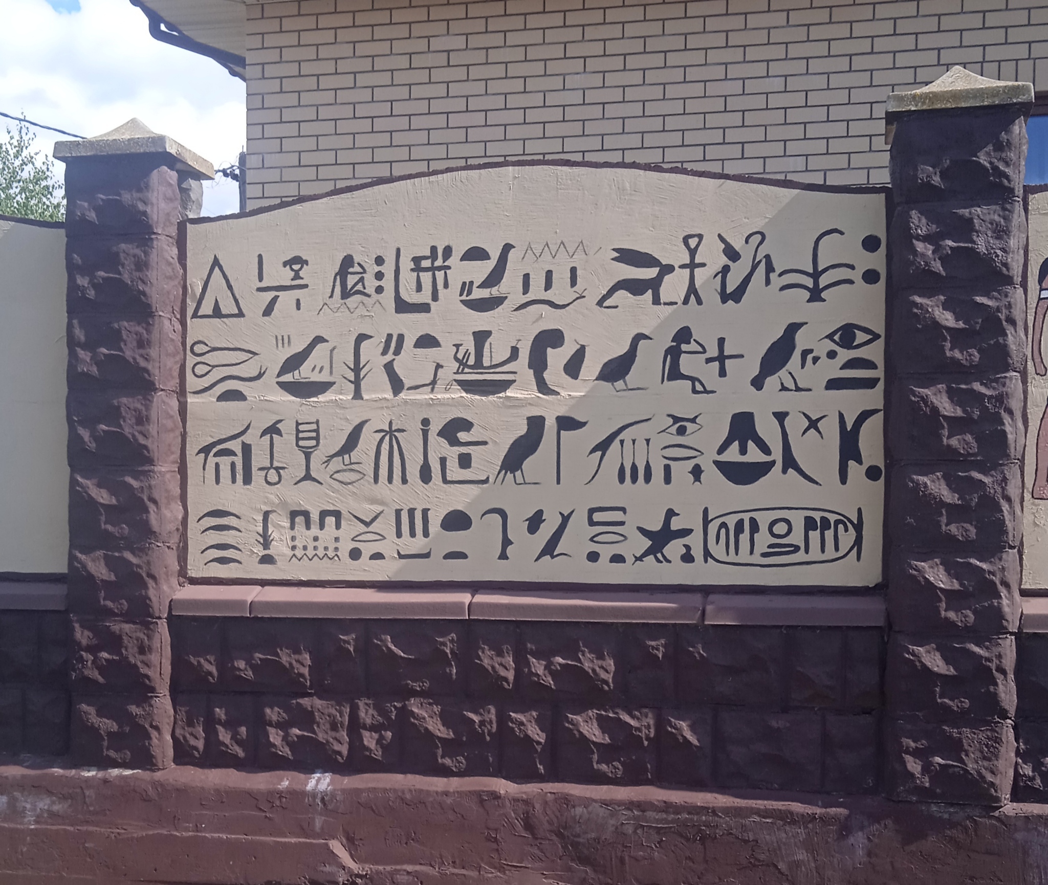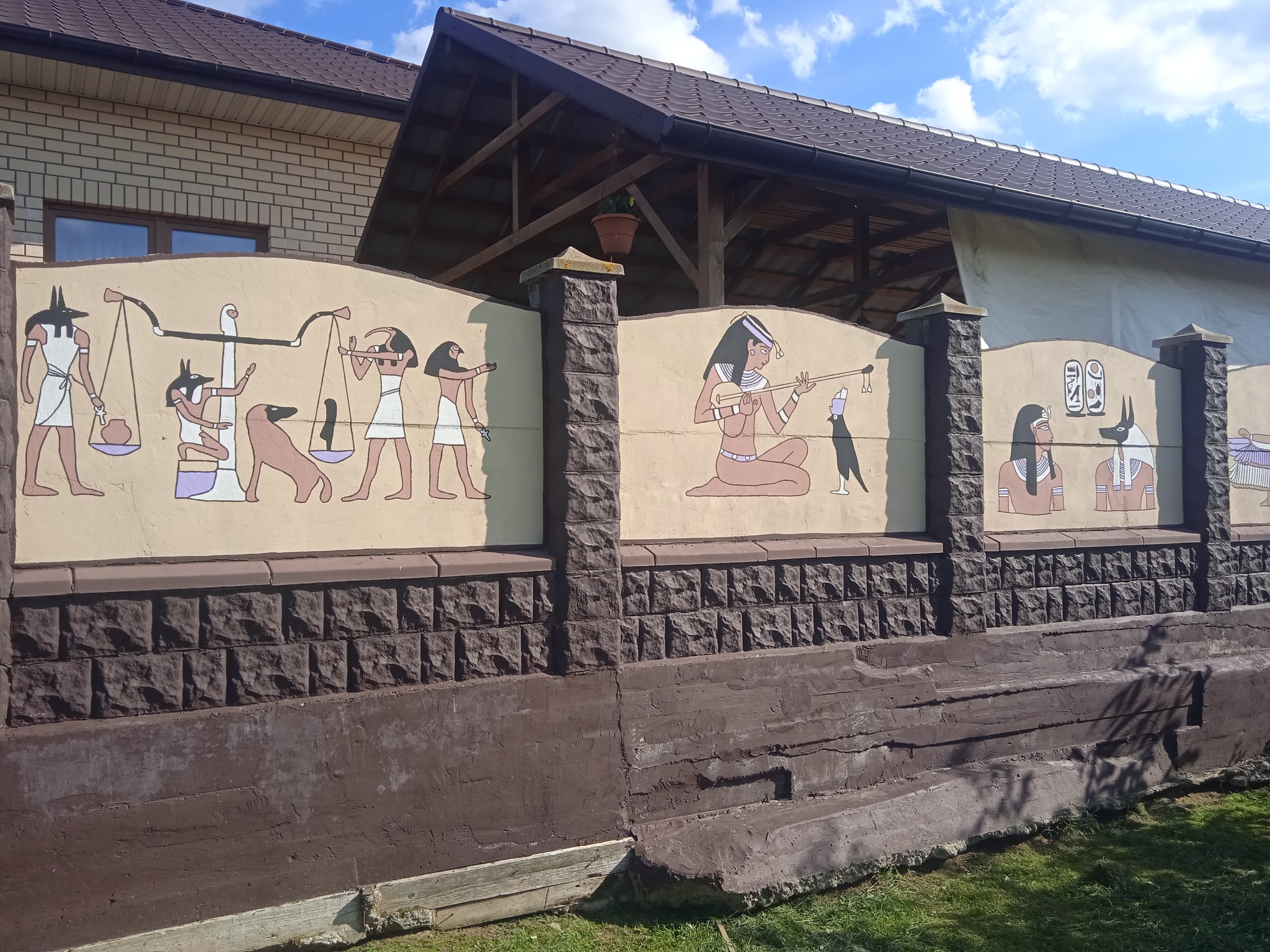 Плохо, конечное, что после каждой зимы на опорной стенке появляются высолы т .к. у соседа не сделано водоотведение, его участок выше и вода просачивается через стену. Но эти высолы легко убираются специальной жидкостью, рисунки от них не портятся.