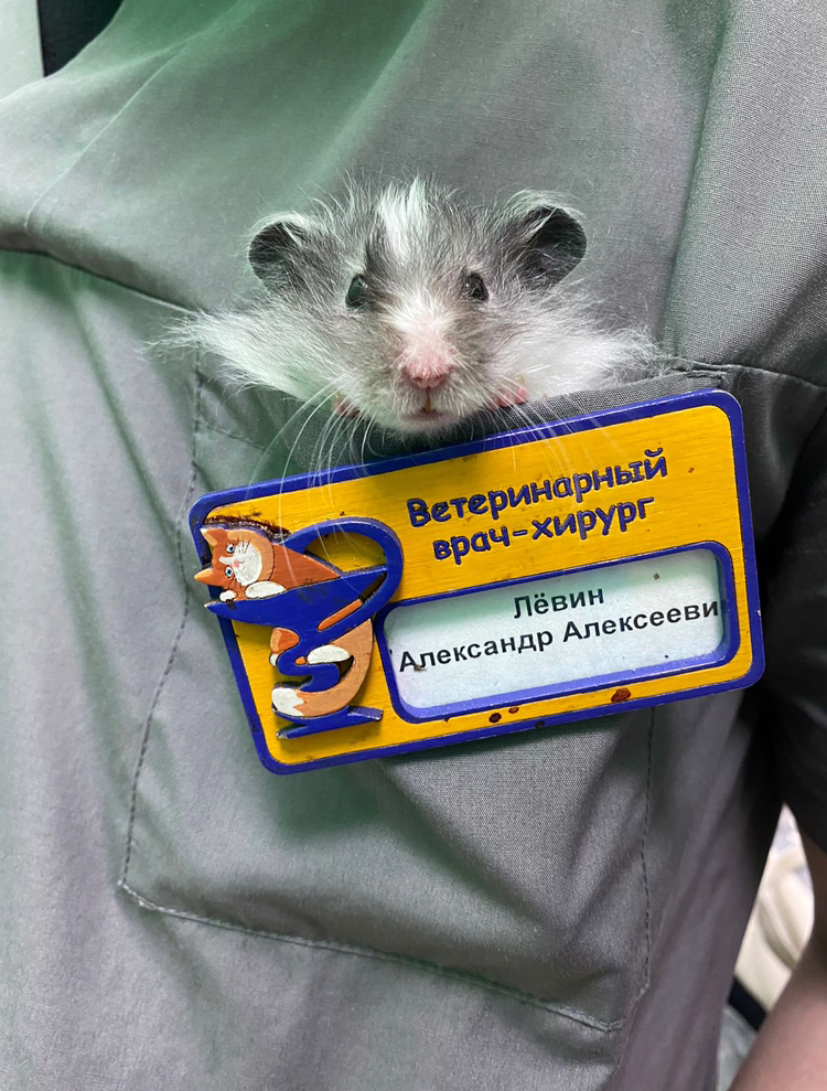 Признаюсь честно до этого дня оперировать настолько маленького пациента мне не приходилось, но операция прошла успешно. На данный момент мы ждём результатов гистологического исследования, наблюдаем за общим состоянием пациента и проводим послеоперационную терапию. Однако Валентин настолько активный и любопытный, что периодически участвует в проведении приема, сидя на своём новом «рабочем месте».