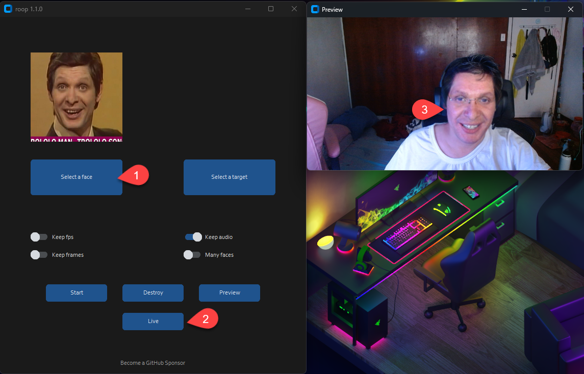 Помните про Пользователь создал скрипт который позволяет создавать DeepFake в один клик. Качество как по мне отличное и превосходит предыдущие решения ? Так вот, это альтернативная версия данного проекта, нацеленная на замену лица в режиме реального времени в видео с вебкамеры.
