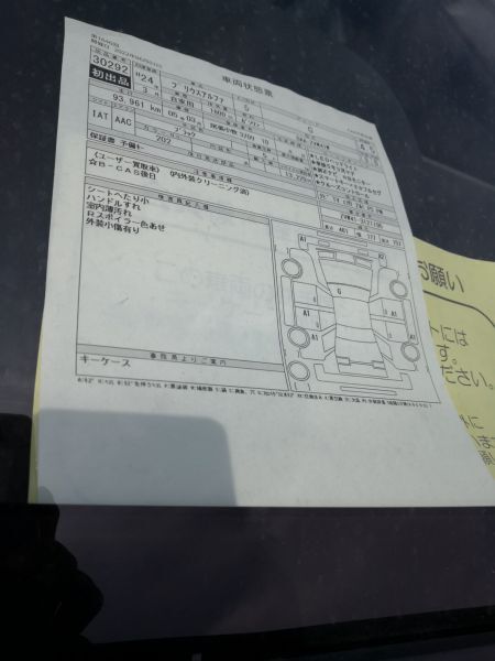 Далее мне отправили фото аукционника. По кузову видны незначительные царапины которые отмечаются отметкой А1, и незначительный скол на лобовом стекле отмеченный как G. На самом деле эти царапины настолько незначительны, что при осмотре вряд ли можно найти их. Но щепетильные японцы умудряются их увидеть и отмечать. Скол я вообще не нашел по итогу.