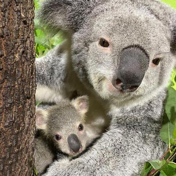 В зоопарке в США маленькая коала Джоуи впервые выглянула из сумки матери.