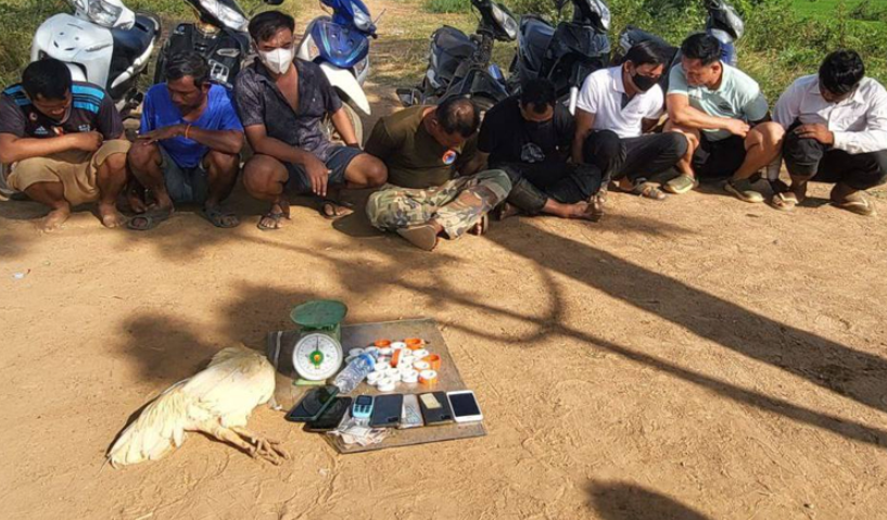 В Камбодже арестовали группу любителей нелегальных петушиных боев.