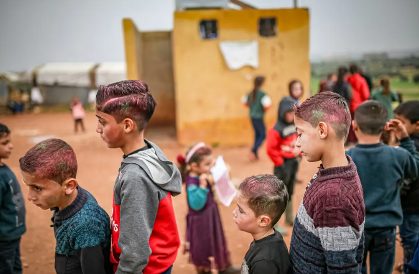 В Сирии дети покрасили волосы в цвета флага Марокко.