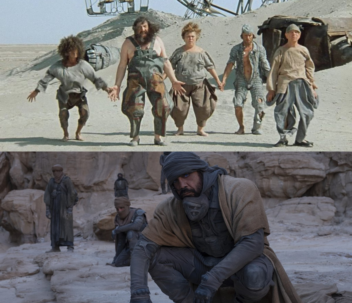 Неделю назад новая "Дюна" оставила приятные ощущения после просмотра. Но вчера наткнулся на ТВ на классику жанра фантастики "Кин-Дза-Дза" Георгия Данелия 1986 года выпуска. И нашел забавные совпадения.