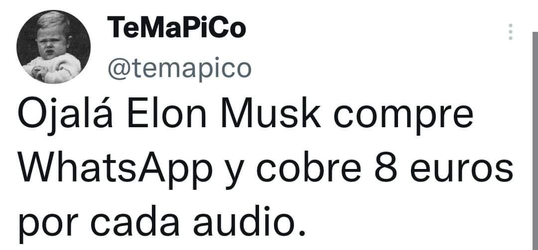 Пусть Илон Маск купит WhatsApp и берет по восемь евро за каждое аудиосообщение.