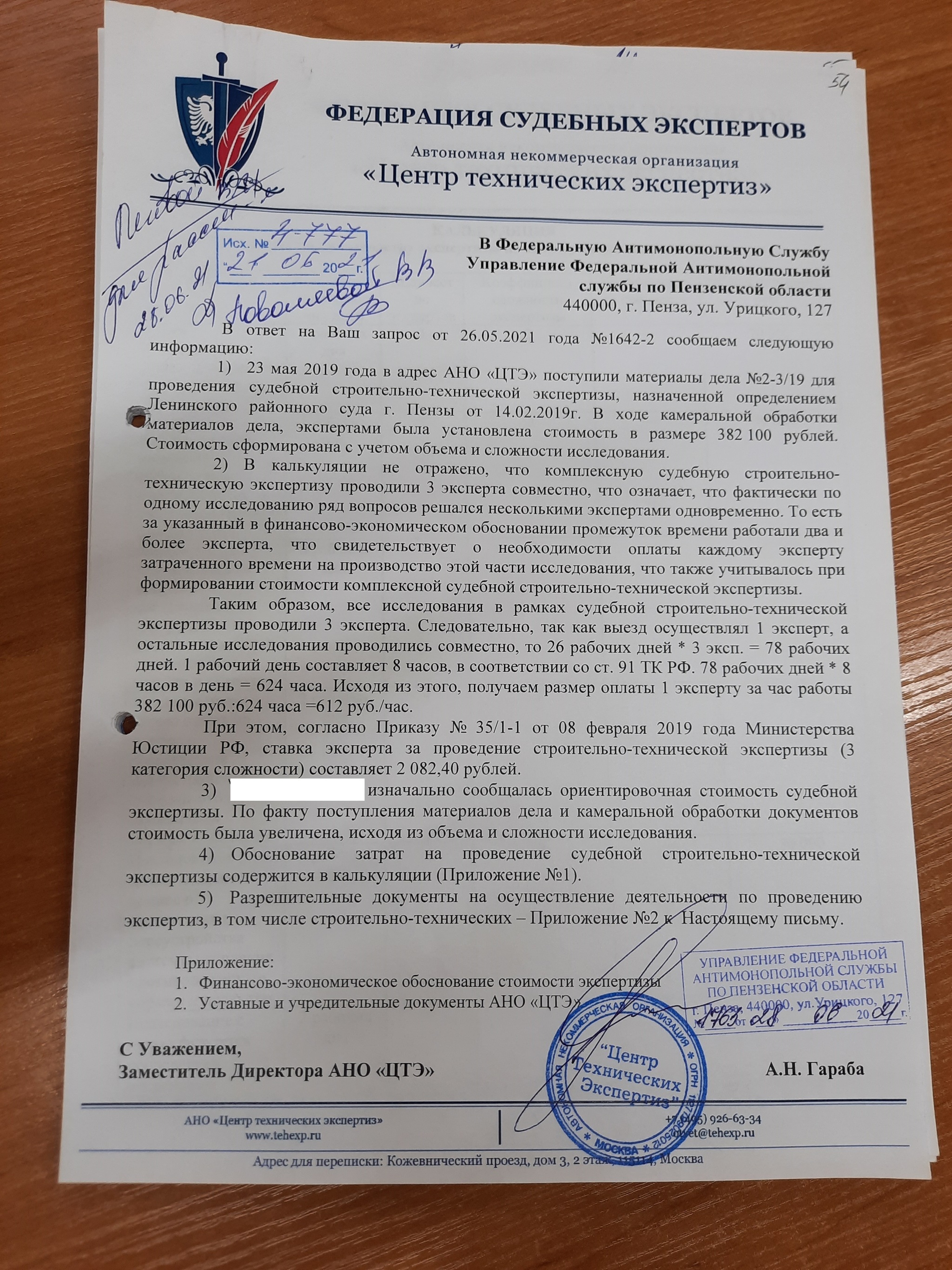 Несколько месяцев назад я обратился в ФАС, чтобы узнать финансово-экономическое обоснование стоимости экспертизы.