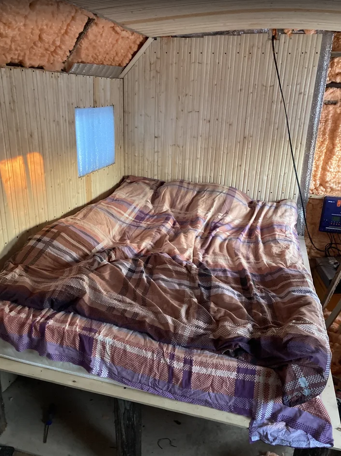 Будем краткими) Перезимовал я нормально! Я уже писал об этом. Кунг я конечно утеплить не успел - закончились деньги а лень осталась. Но как и говорил мне мой армейский опыт - с буржуйкой можно и в палатке в минус 50 зимовать. А с печкой длительного горения еще и просыпаться каждые пол часа не нужно было. Короче было тепло и комфортно. Еще с первым снегом отгрохал себе кровать