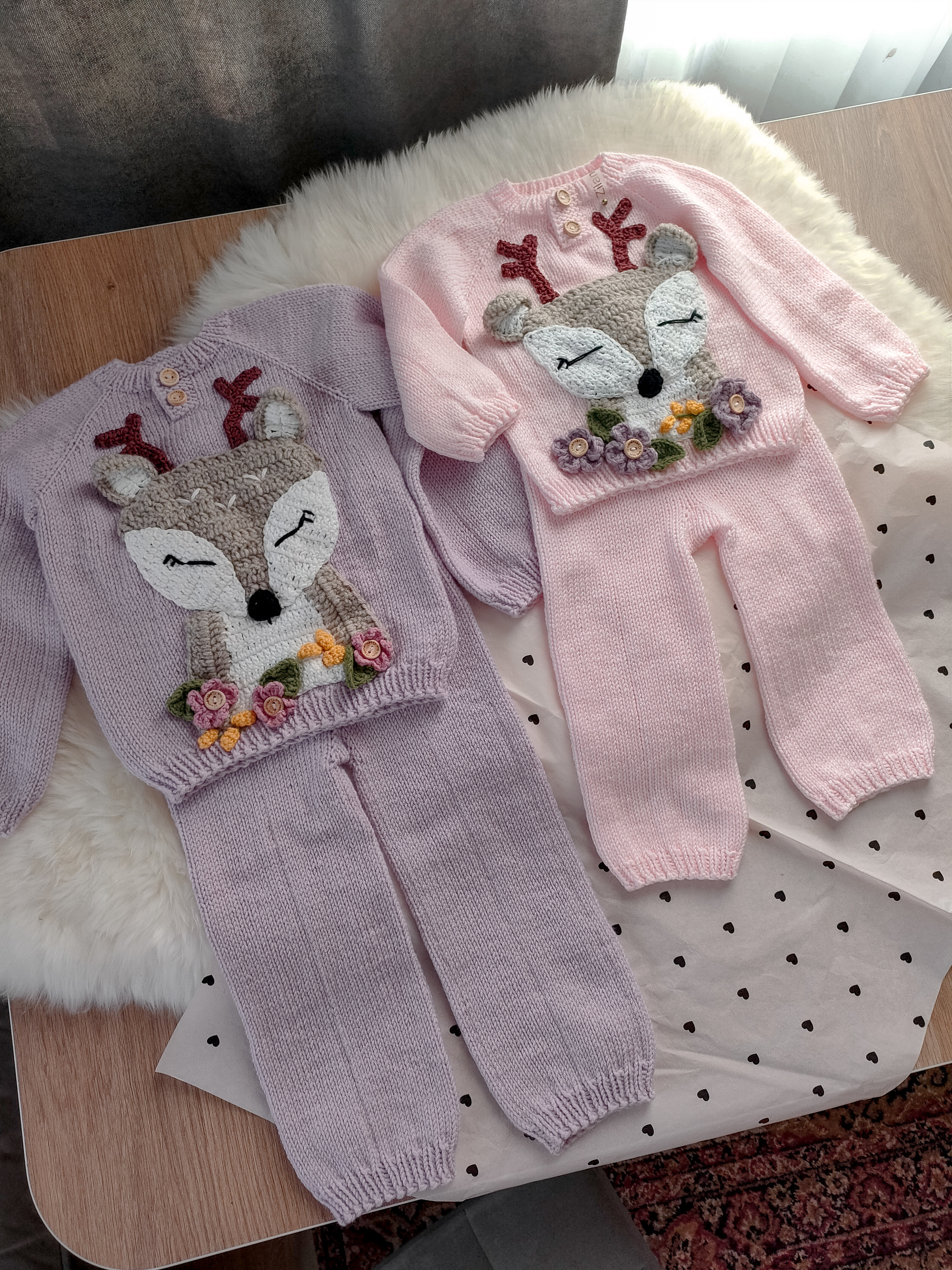 Связала еще 2 комплекта с олененком. Итого 4 уже связано и сейчас вяжу пятый) Популярные они, эти оленята.