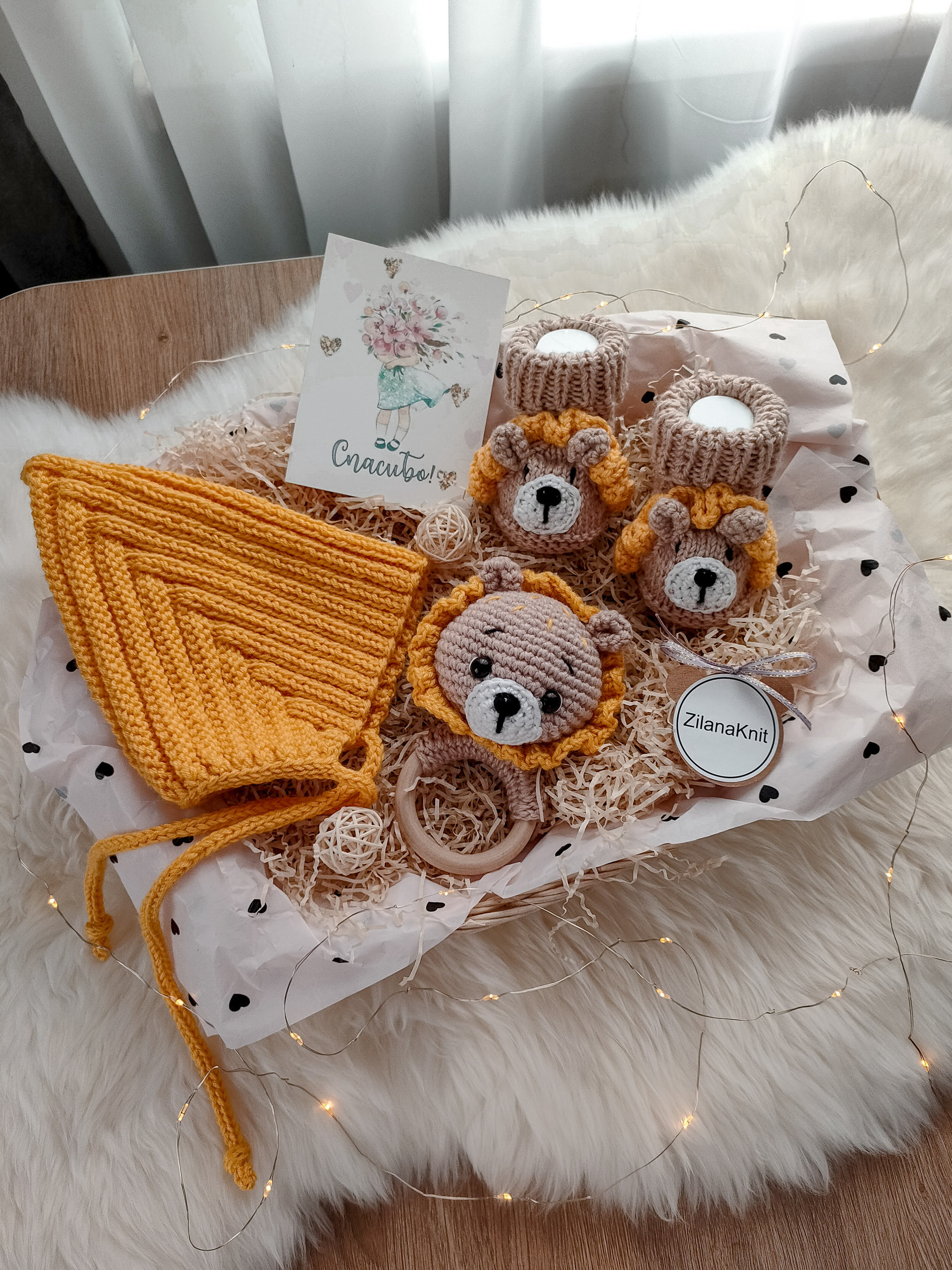 Попробовала вязать небольшие подарочные наборы и на одном дыхании связала 4 штуки. Со львенком тут же купили, остальные есть в наличии.