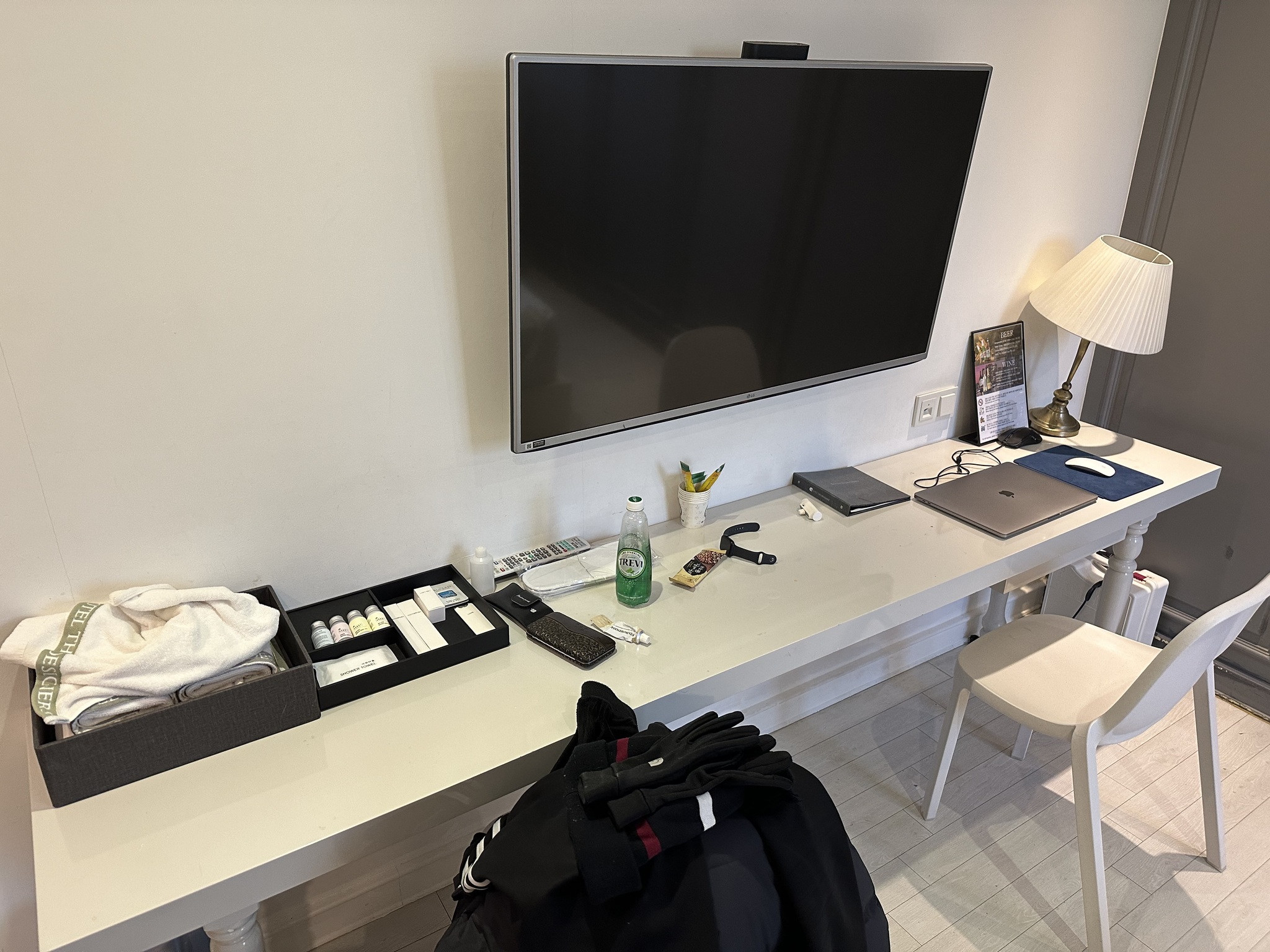 Ну ладно, если все это можно считать придирками, то вот от невозможности найти розетку у меня немного пригорело. Облазив весь номер, я пошел на рецепшен - ну невозможно же без розеток, ей-богу. На что портье с кривой недовольной физиономией сказал, что сейчас поднимется.