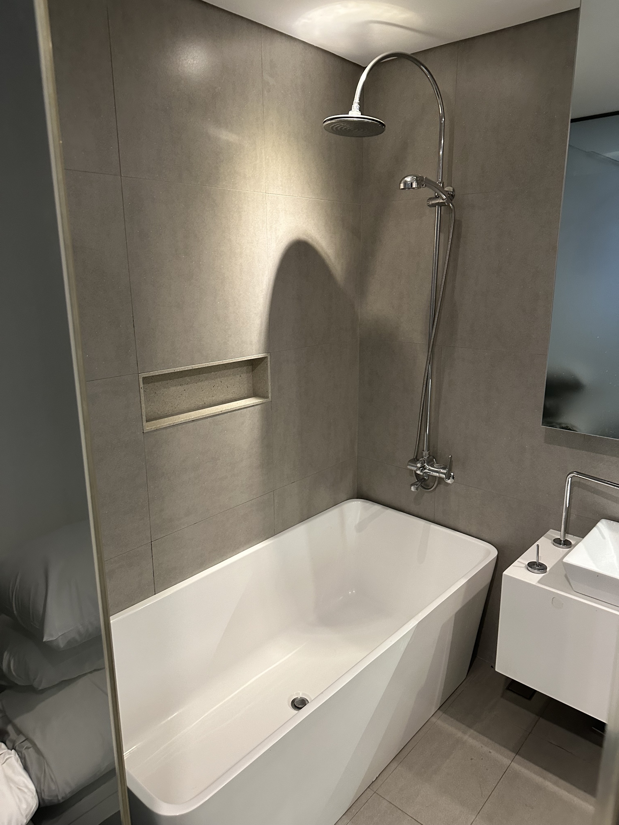 Заселяешься, значит, в отель - ну и первое, абсолютно естественное действие - раздеться и помыть руки+сходить в душ и переодеться. Но отель, оказывается, проектировали одаренные дизайнеры и свет в ванной комнате включается только от входа