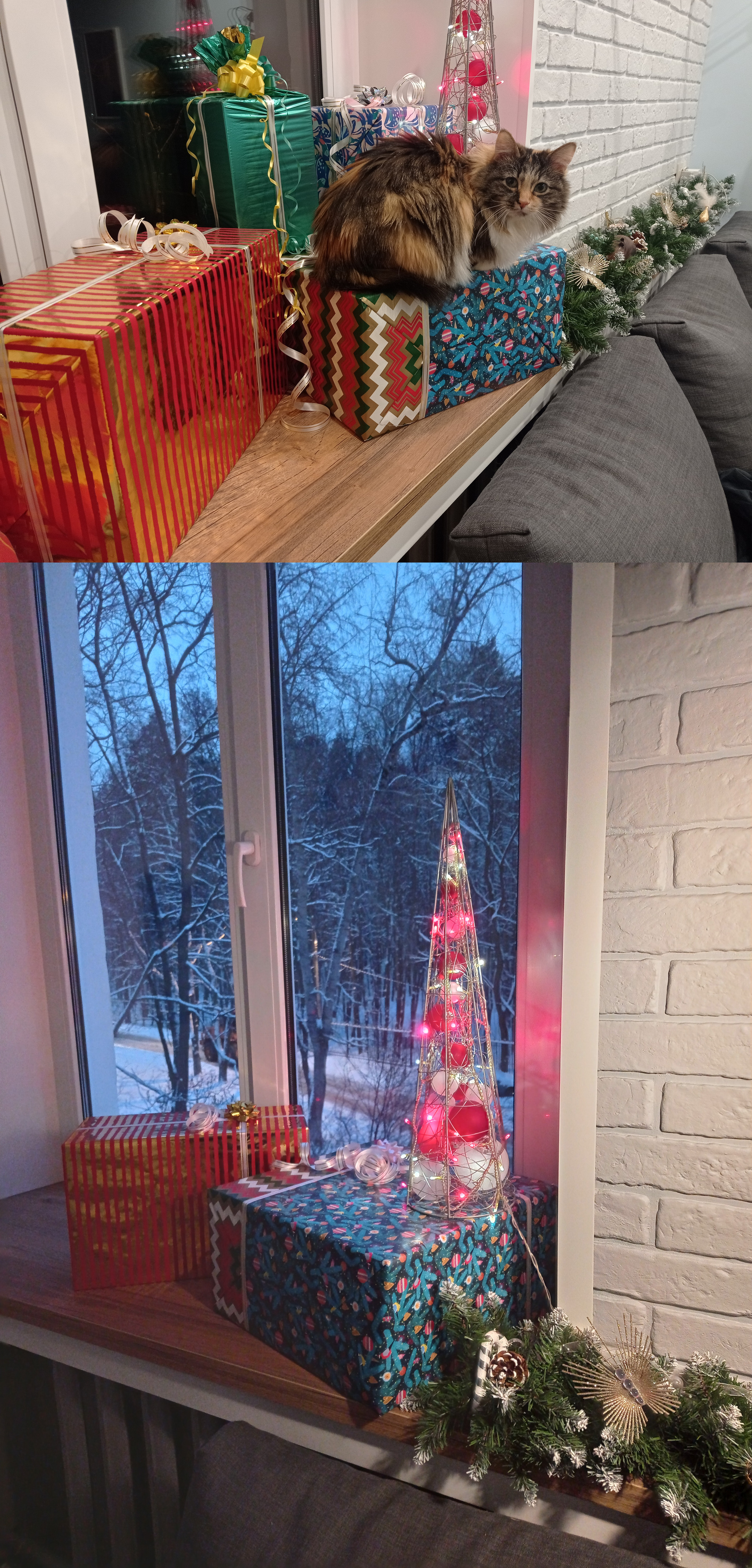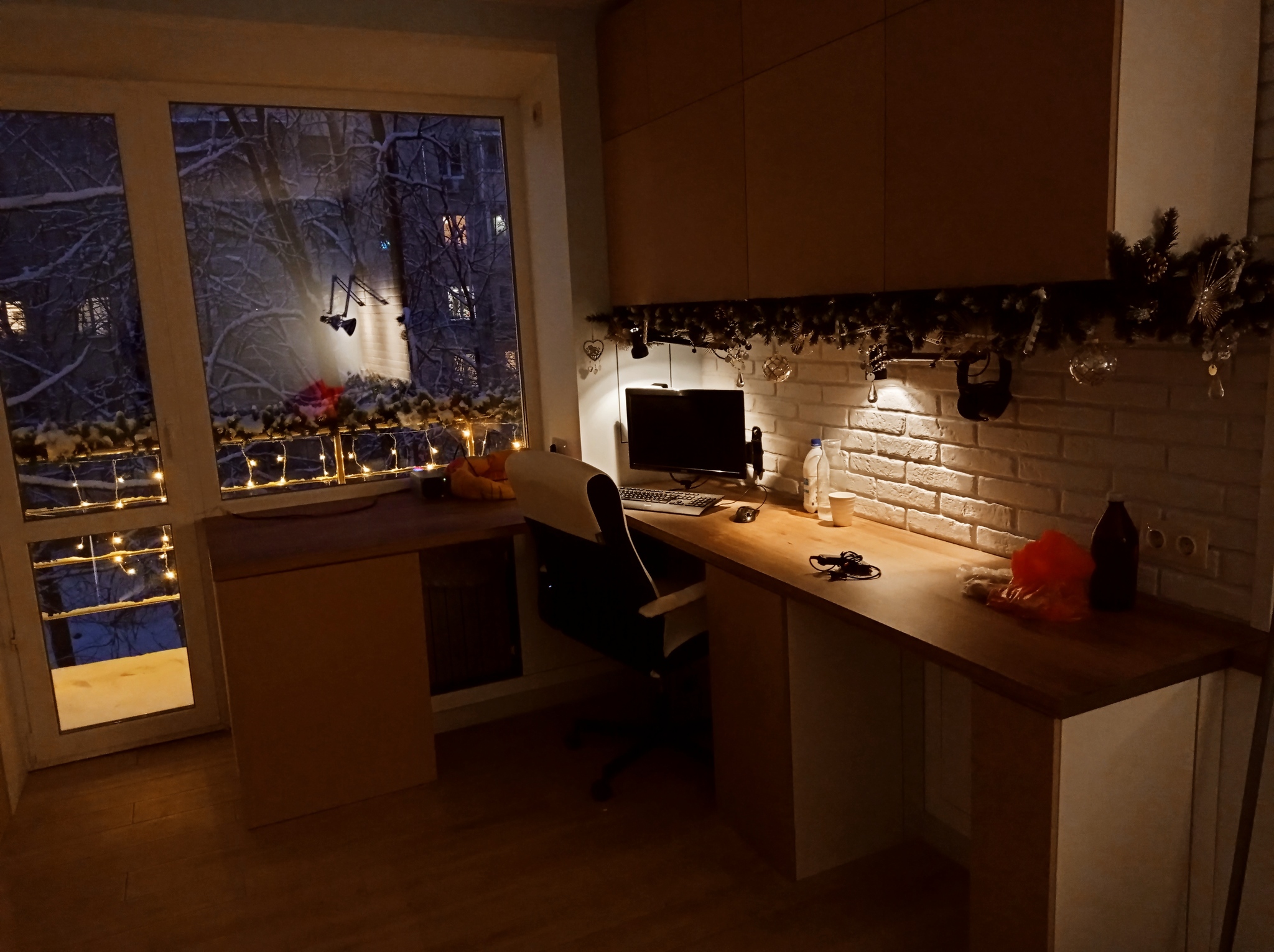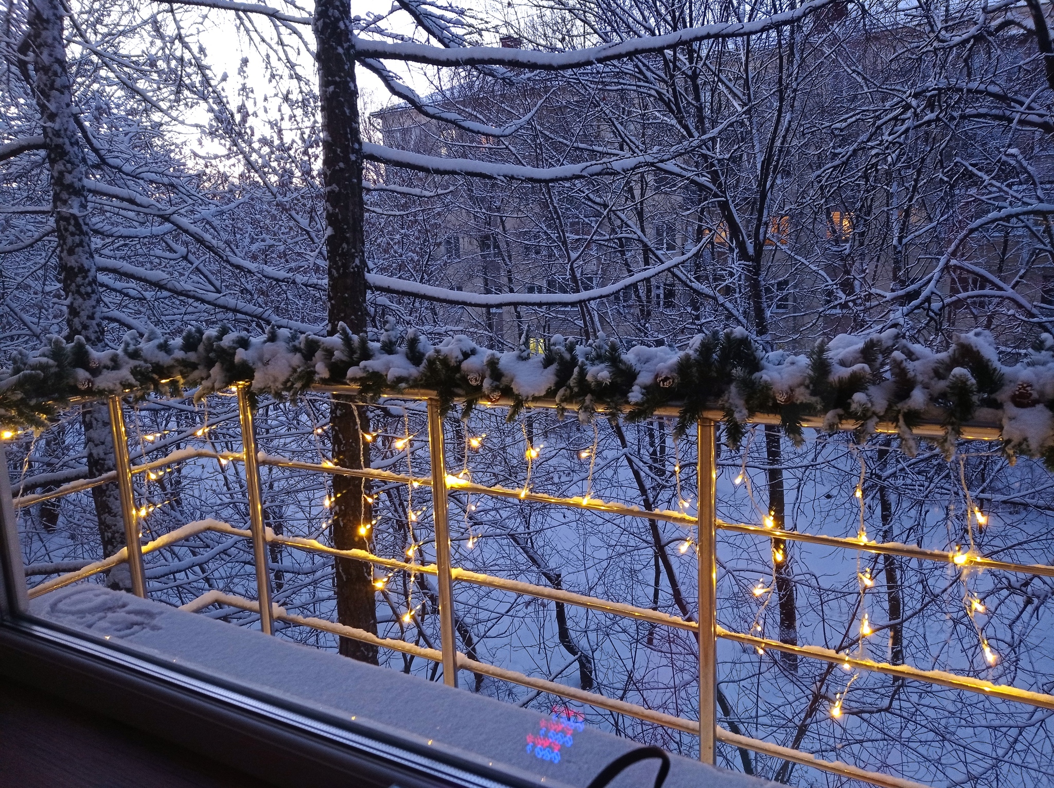 Затем пробурил стену насквозь, подключил гирлянду для внешнего применения и... долго любовался результатом