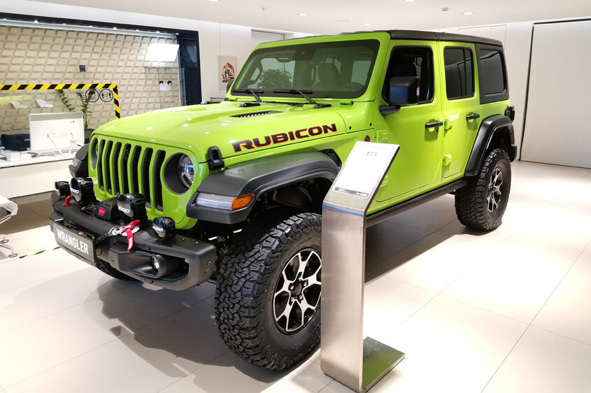 Wrangler — это тоже внедорожная экзотика, но в данном случае машину хотя бы немного дооснастили. Но прибавка в цене вновь выглядит неадекватной. Пятидверка в самом хардкорном исполнении Rubicon в прайс-листе оценивается в 6 260 000 рублей, а на подиуме в шоу-руме стоит единственный автомобиль за 9,3 млн в довольно специфичном тюнинге. У него специальные грязевые колёса, лебёдка, дополнительные фары на переднем бампере, подготовка под установку шноркеля и ещё целый ряд доработок, которые не посвящённым в тематику офроуда покажутся пустым звуком. Но на 3 миллиона они никак не тянут.