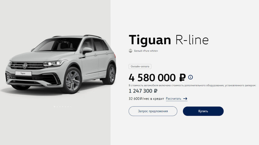 Volkswagen Tiguan: 4 580 000 рублей (+ 1,44 млн ₽)