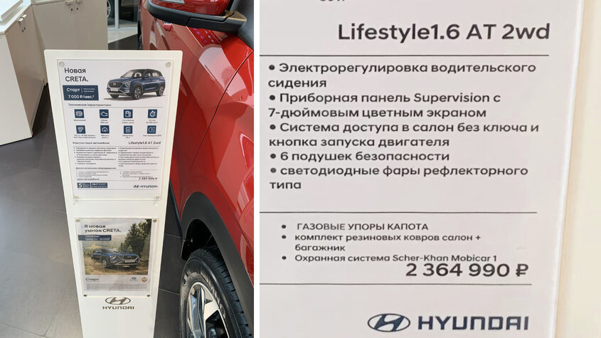 Hyundai Creta: 2 364 990 рублей (+ 710 000 ₽)