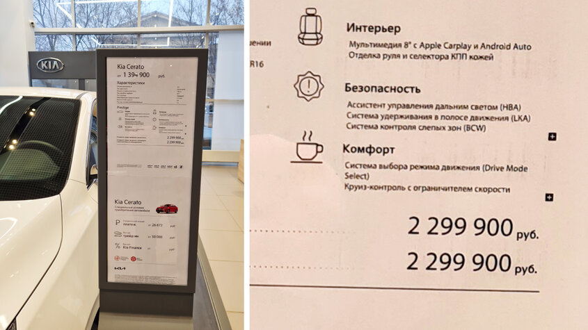 Kia Cerato: 2 299 900 рублей (+ 670 000 ₽)