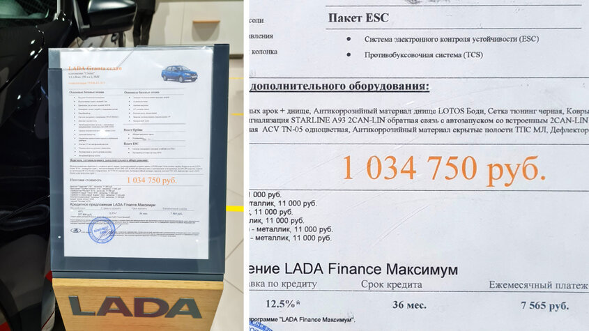 Lada Granta: 1 034 750 рублей (+ 440 000 ₽)