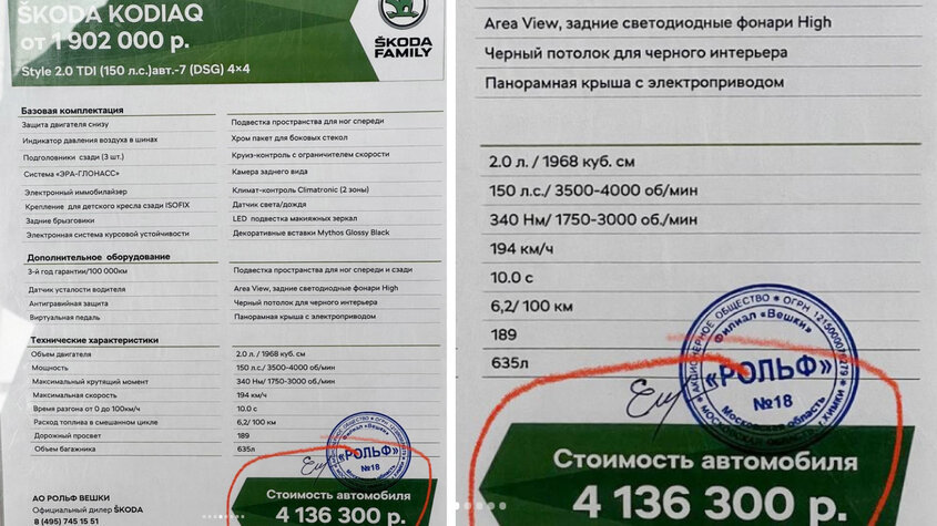 Skoda Kodiaq: 4 136 300 рублей (+ 1,4 млн ₽)