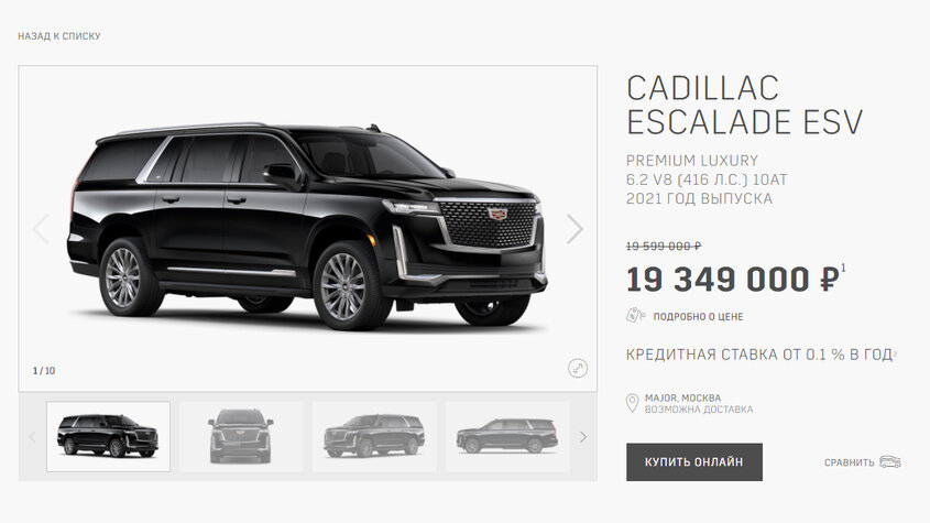 Cadillac Escalade ESV: 19 599 000 рублей (+ 10 млн ₽)