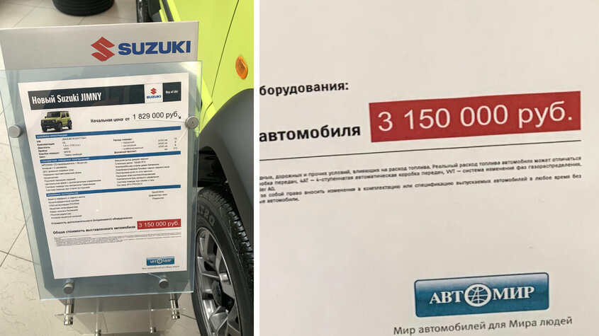 Suzuki Jimny: 3 150 000 рублей (+ 1,54 млн ₽)