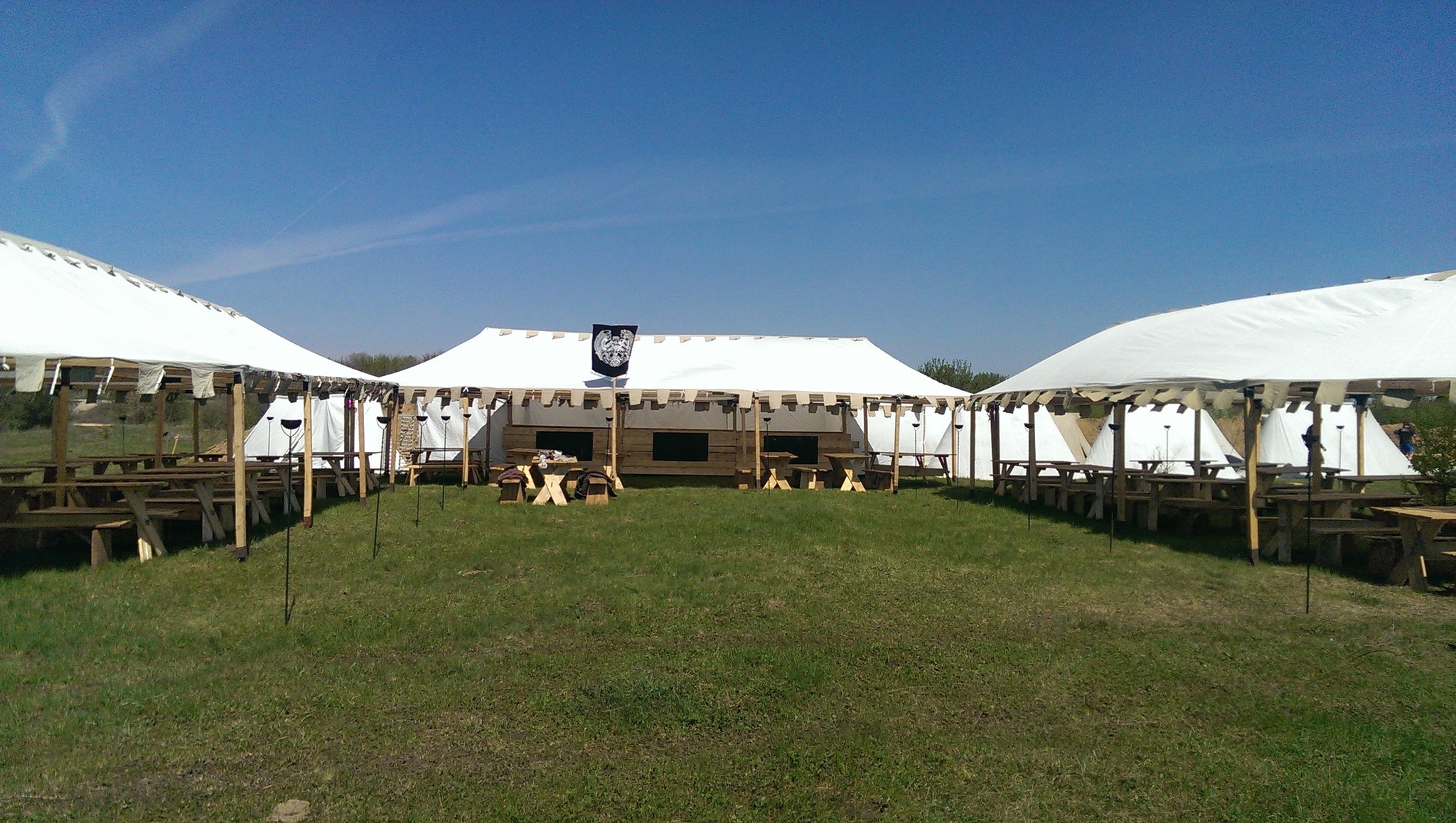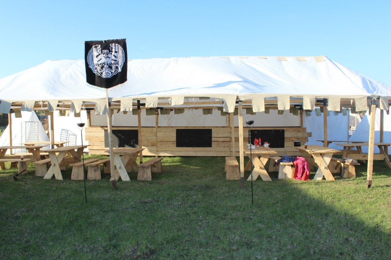 Пришлось придумывать новые конструкции. Наша таверна была сделана с любовью, но на коленке, а тут нужно было возвести средневековый «Макдак». И не один, а целый 5 павильонов, и работать они должны были в разных точках полигона, в километре друг от друга.