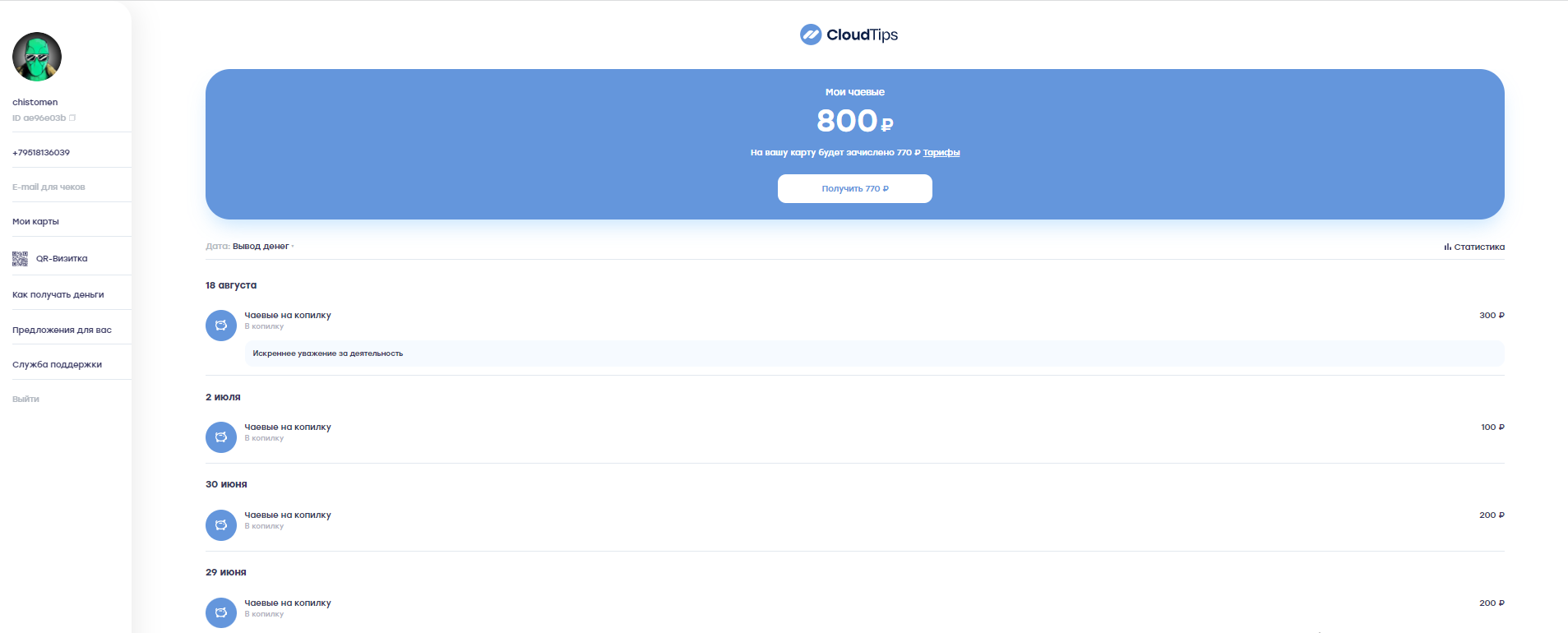 И еще в течении дня поступали деньги!