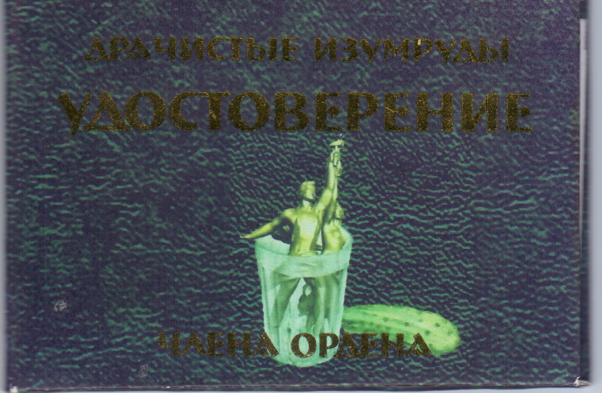 Я принялся ему объяснять, что много лет назад компания закадычных друзей и подруг создали шутошный Орден Драчистых изумрудов*. Что Орден этот создавался в позитивных целях. Что бы при встрече не просто бухать и жрать шашлыки, а все это делать со смыслом.