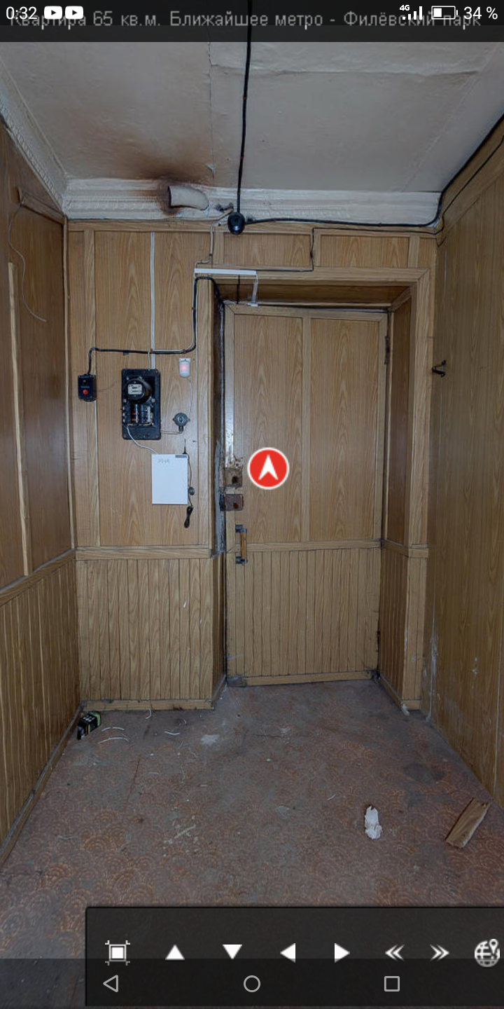 Входная дверь изнутри. Линолеум, дерево, лепнина. Счётчик прямиком из СССР. Красная кнопка пугает для чего она и можно ли ее будет убрать после покупки квартиры?