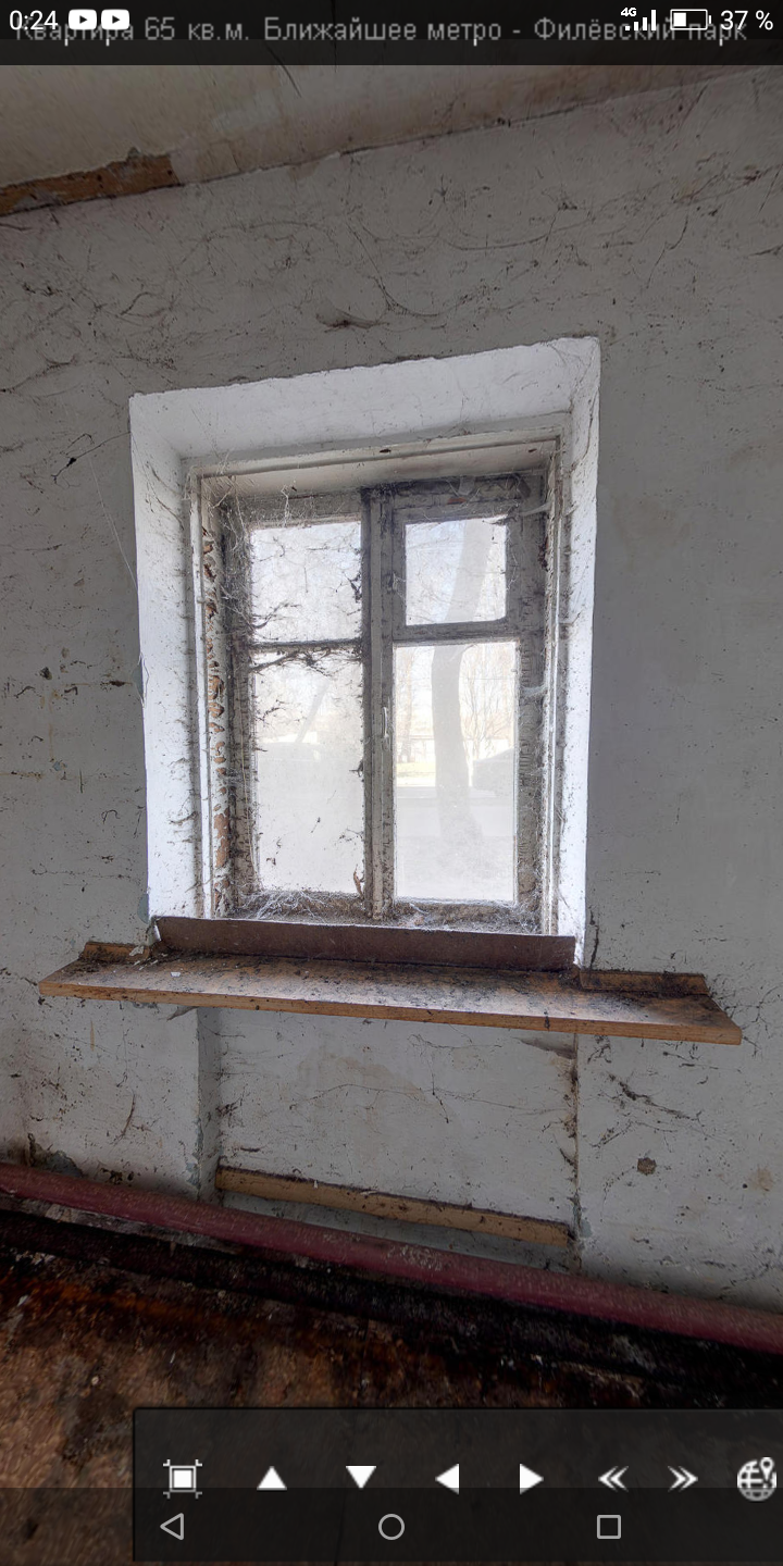 Два окна это хорошо, но провалившийся пол плохо. Справа в углу залаз в соседнюю комнату детям понравится.