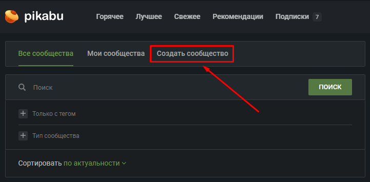 Пикабушник, который набрал 5000 рейтинга, может создать собственное сообщество и развивать его самостоятельно. Кнопка “Создать сообщества” находится на странице сообществ: