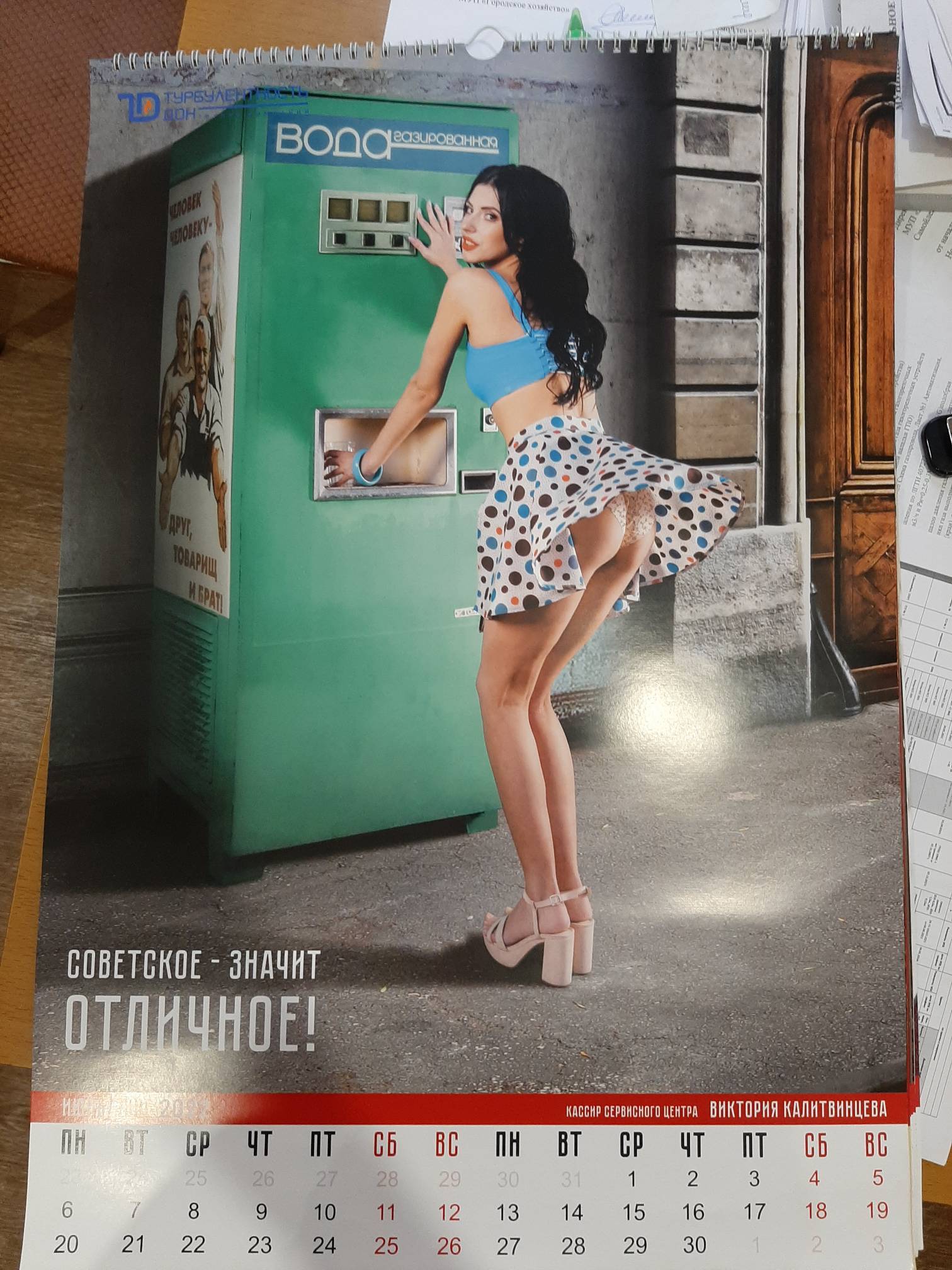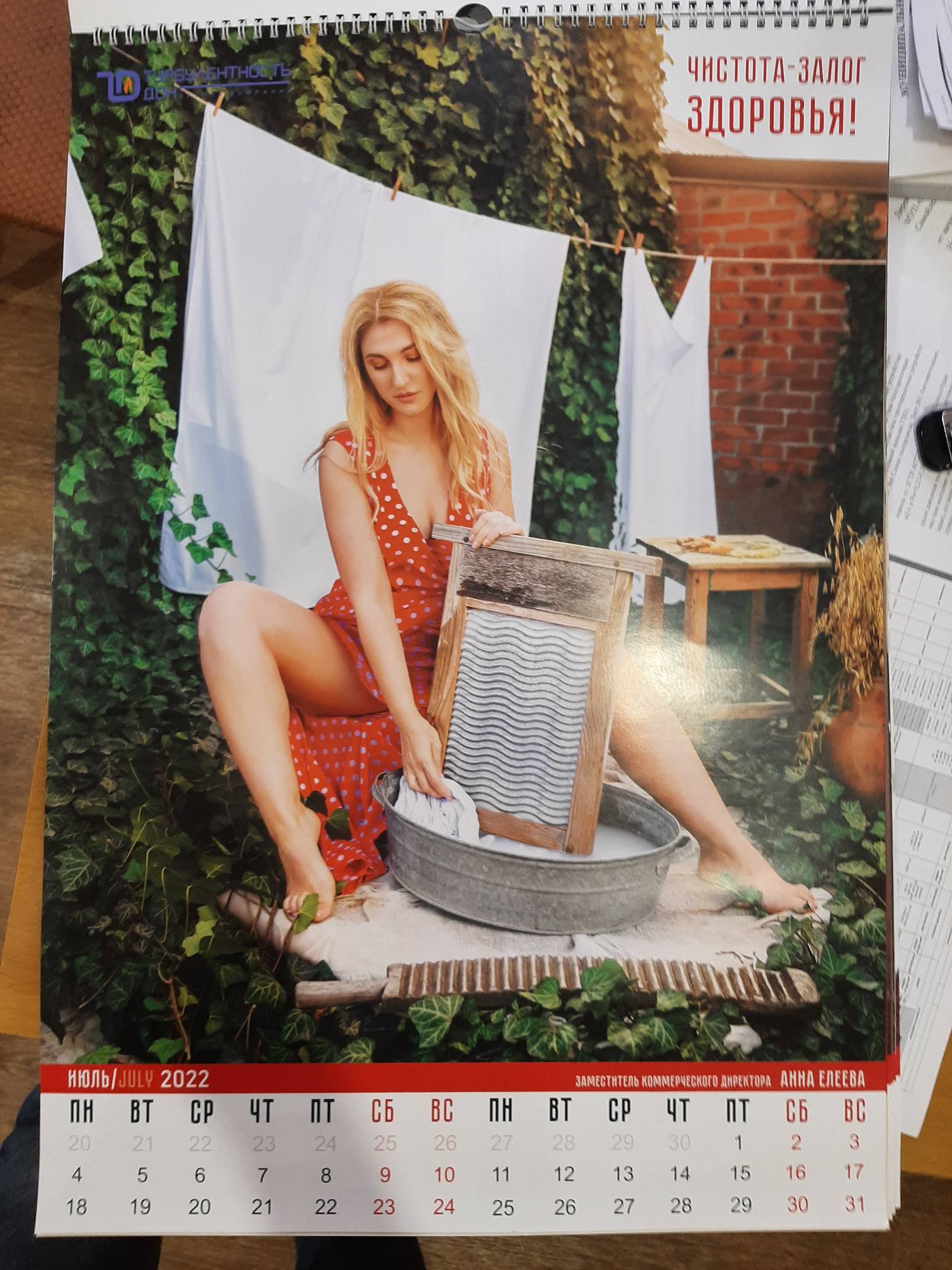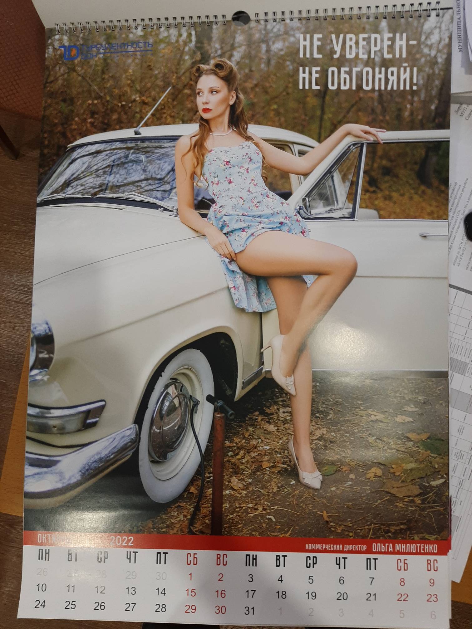 Заезжал по работе к товарищу, а в кабинете у них висит календарь с девахами полуобнаженными.