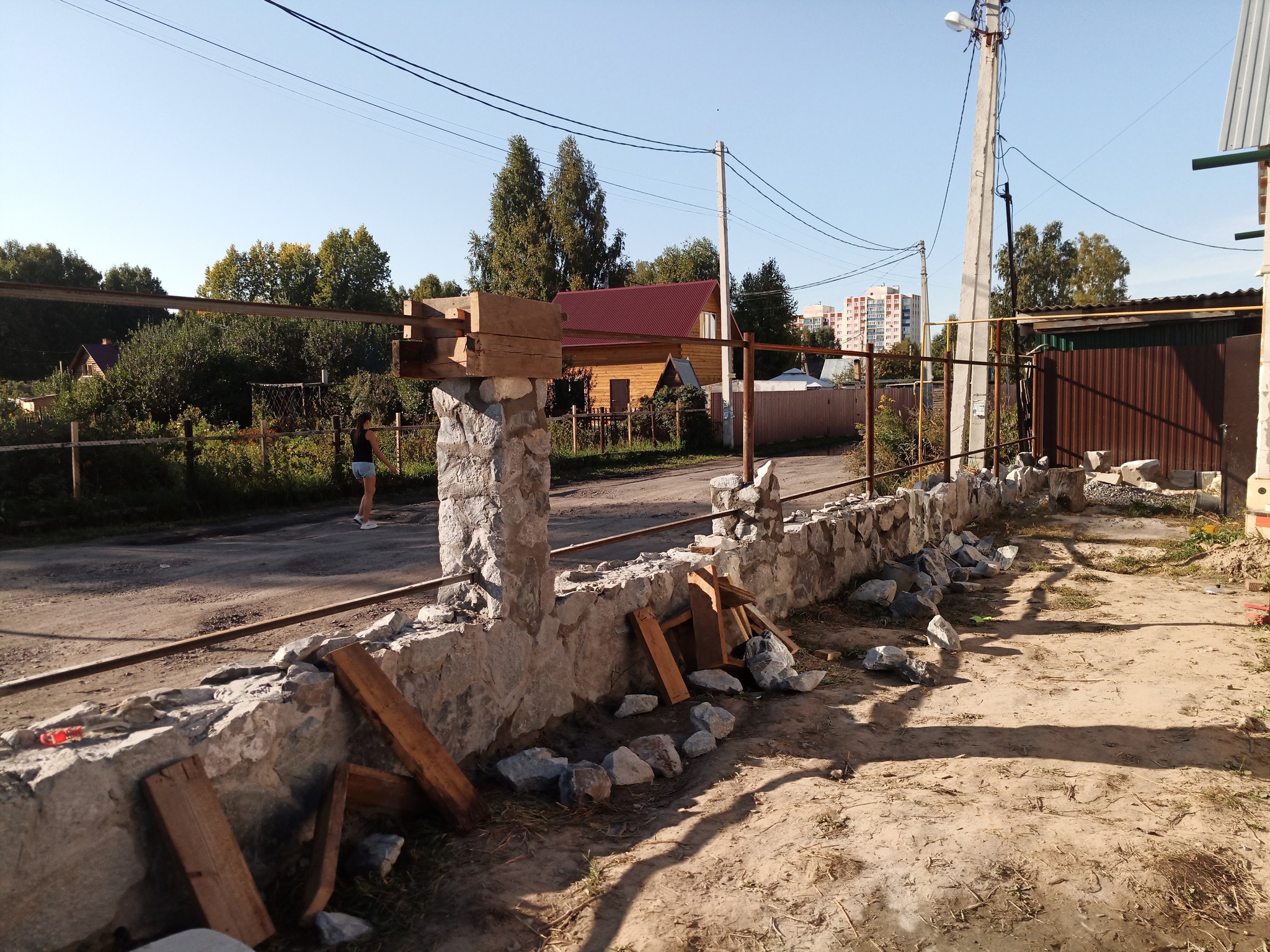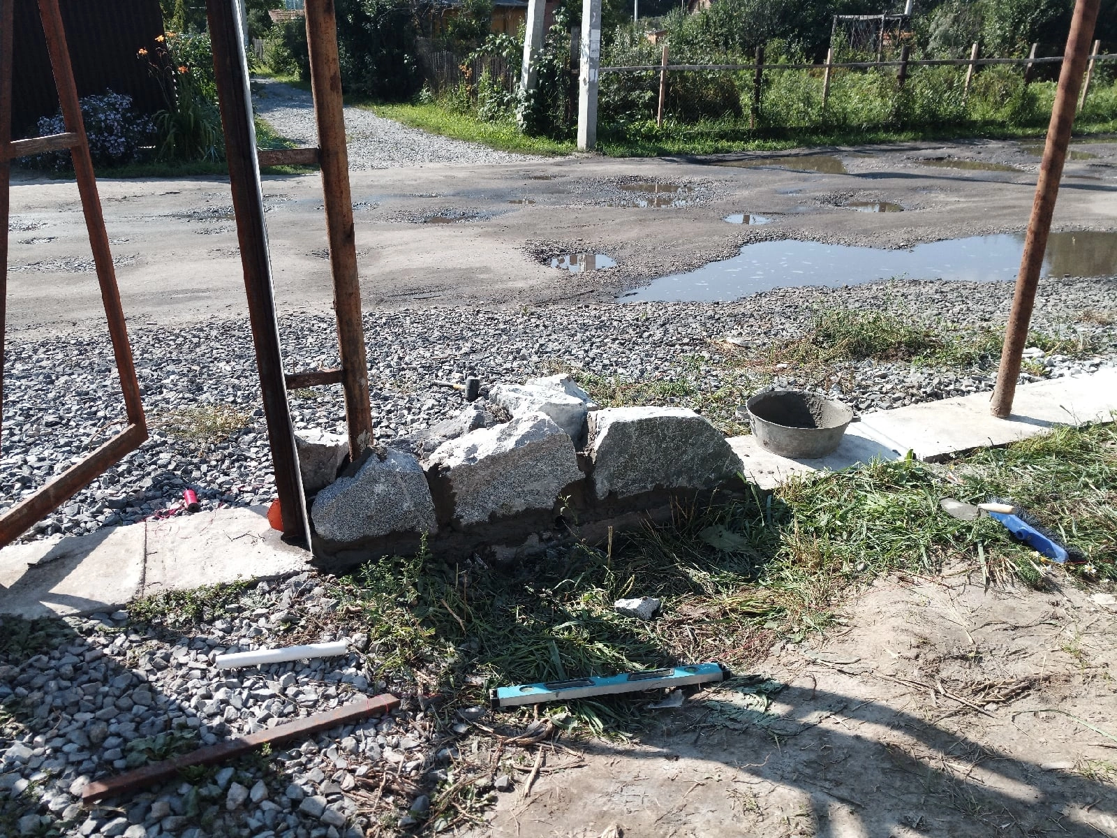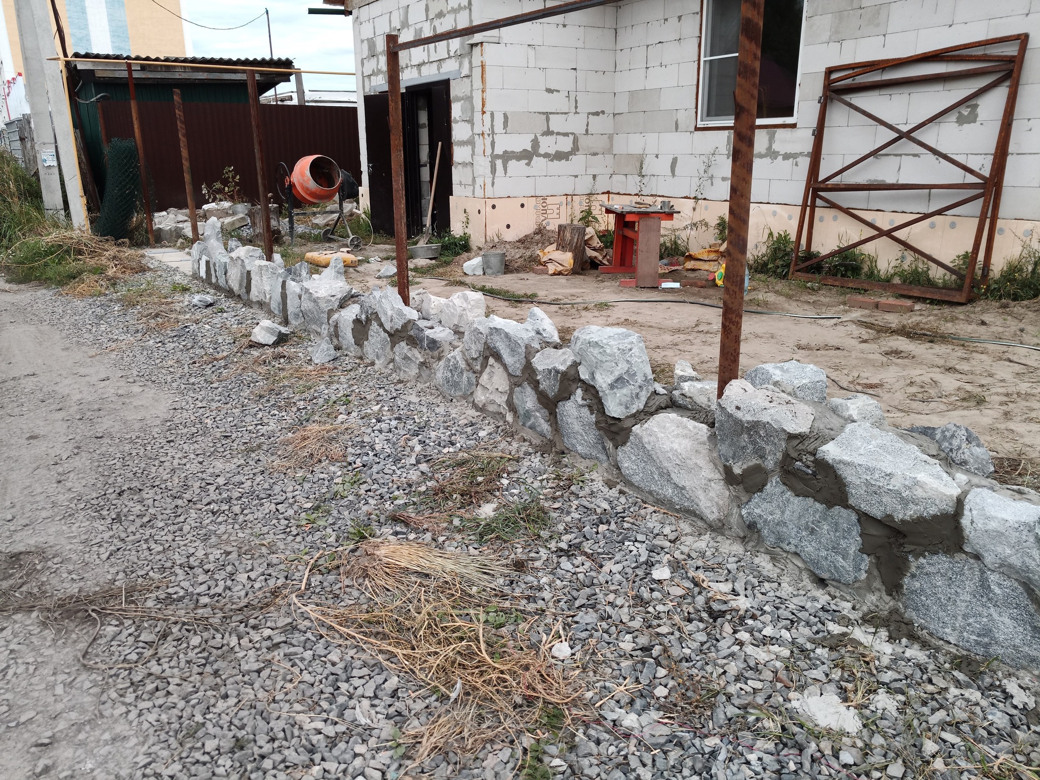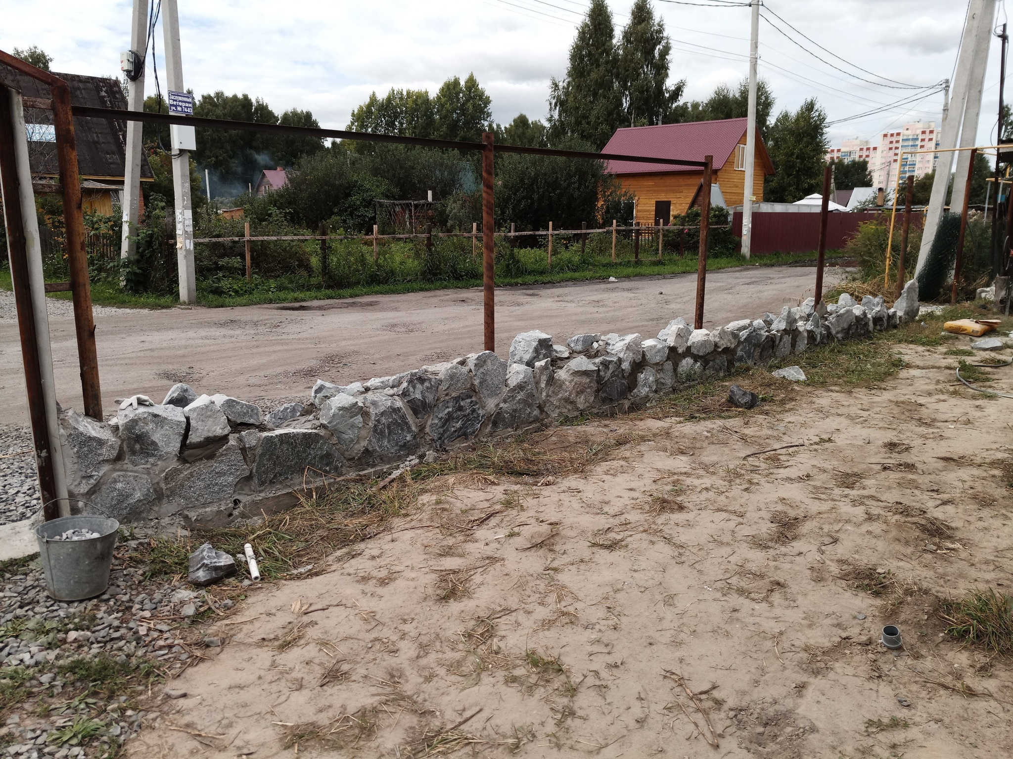 Были сложности в процессе, например разбивая кувалдой валуны, средняя рукоять, до расщепления на мелкие части живет всего пол часа. А бур от перфоратора становится непригодным для бурения на третьем отверстии. В общем если хотите сделать такой забор, не берите бутовый камень, берите калиброванный. Дороже, но ложить (класть, укладывать.. да похуй, соберем ссаные тряпки еще и от граммарнаци) его проще, думаю.